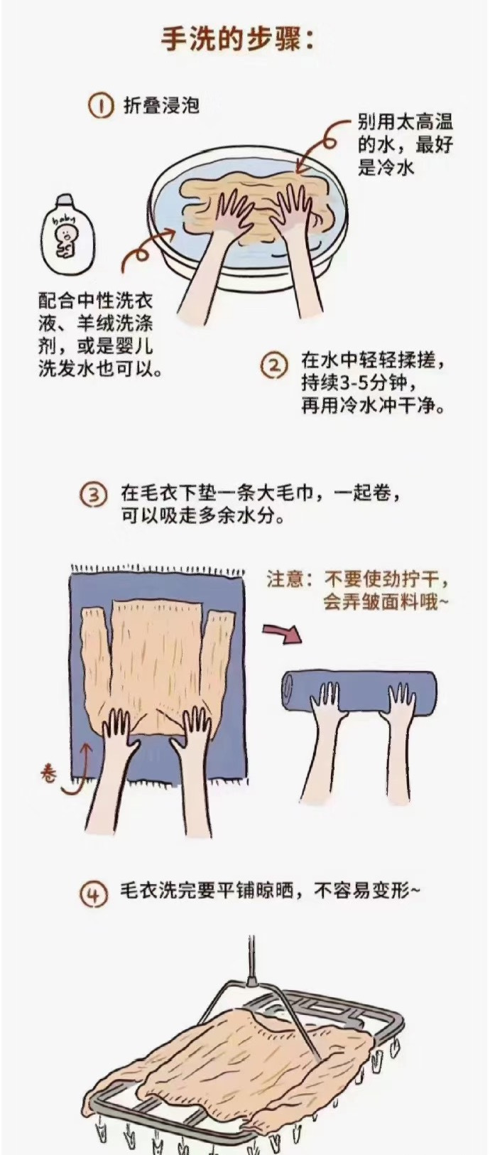 轻柔手洗(羊毛具有自清洁能力,不用经常洗哦)