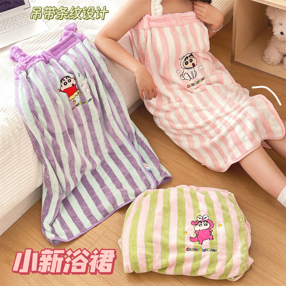짱구 정품 공인 슬링 목욕 스커트 귀여운 산호 양털 빠른 건조 두꺼운 목욕 가운 만화 목욕 큰 수건스토어 가기