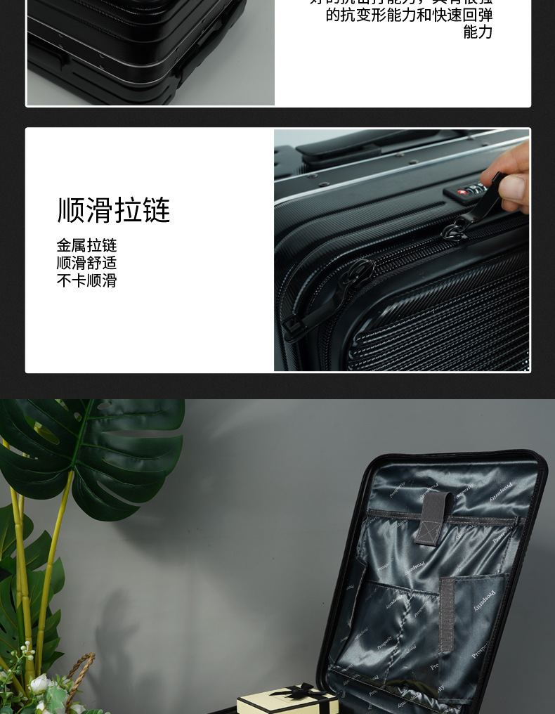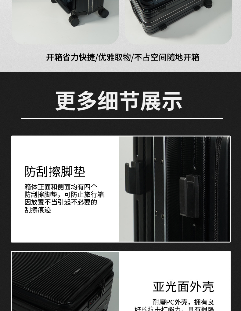 새로운 프론트 오픈 뚜껑 수하물 케이스 대용량 측면 개방 세관 코드 잠금 탑승 케이스 여행 트롤리 케이스 세트스토어 가기