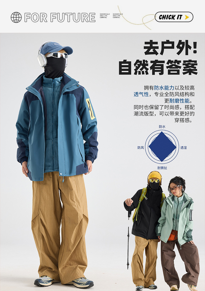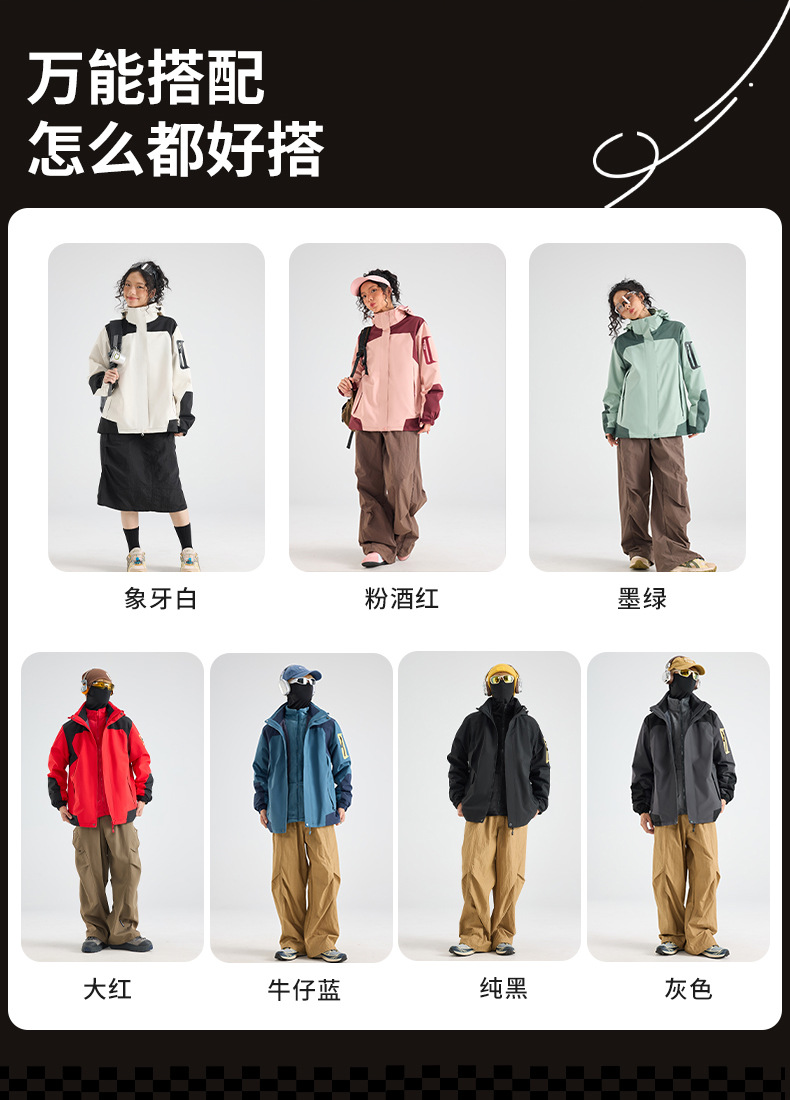 2024 새로운 3 대 1 투피스 여성용 방풍 방수 등산 의류 냉방성 회사 작업복스토어 가기