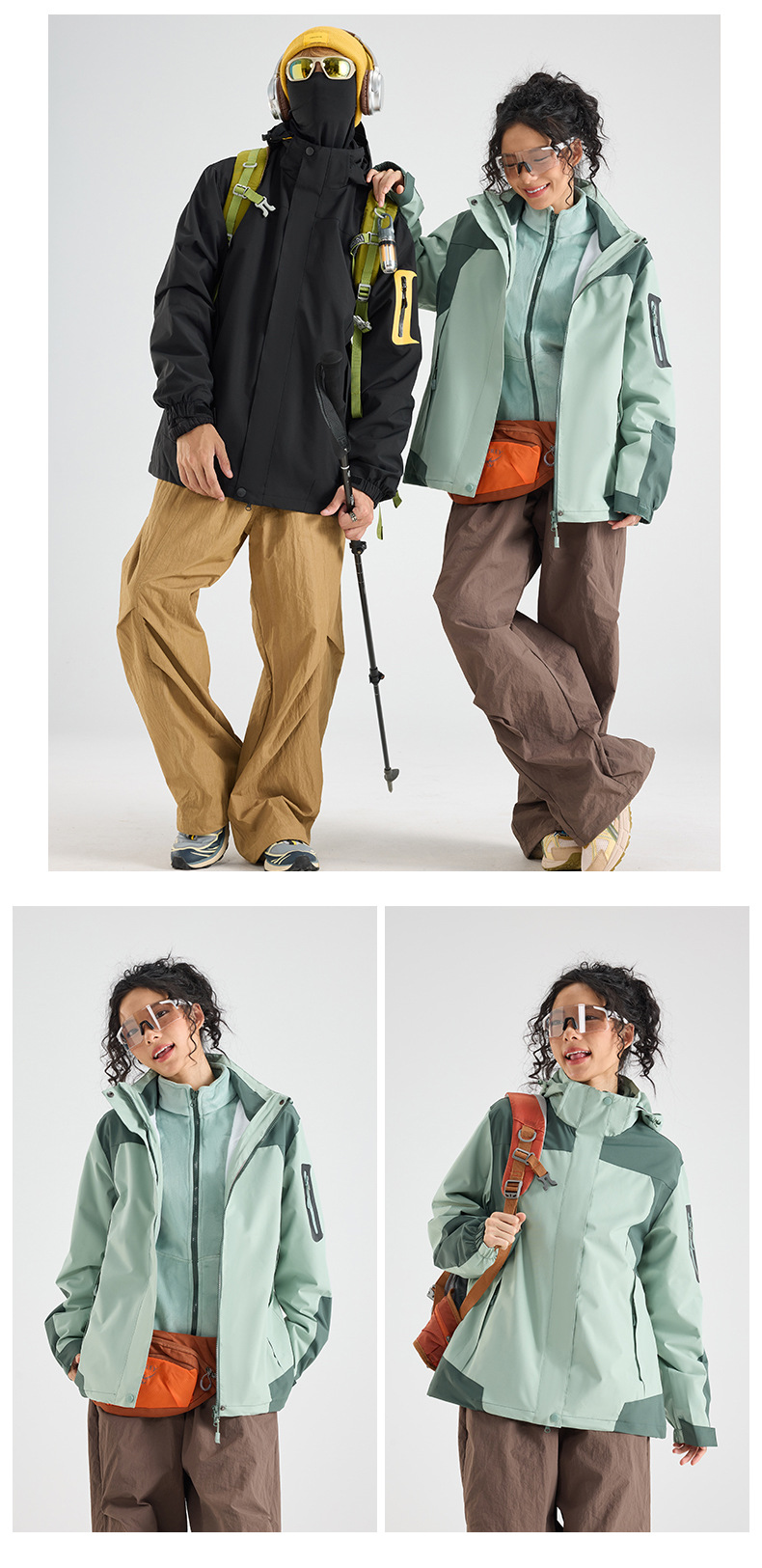 2024 새로운 3 대 1 투피스 여성용 방풍 방수 등산 의류 냉방성 회사 작업복