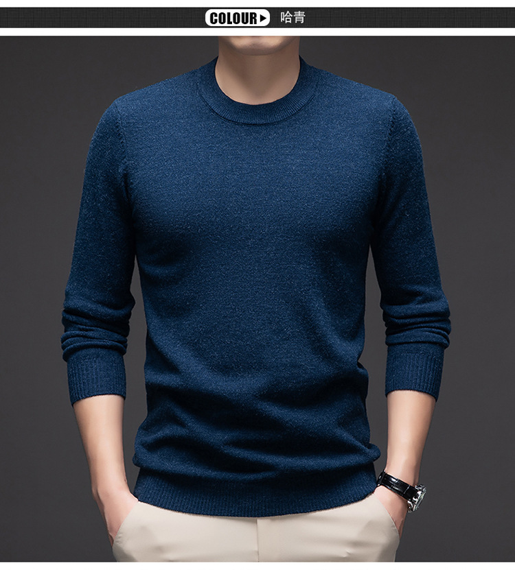 남성용 라운드넥 니트 긴팔 가을 겨울 캐주얼 패션 단색 베이직 풀오버 이너웨어 스웨터스토어 가기