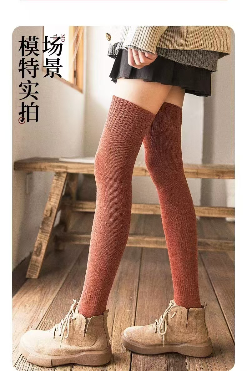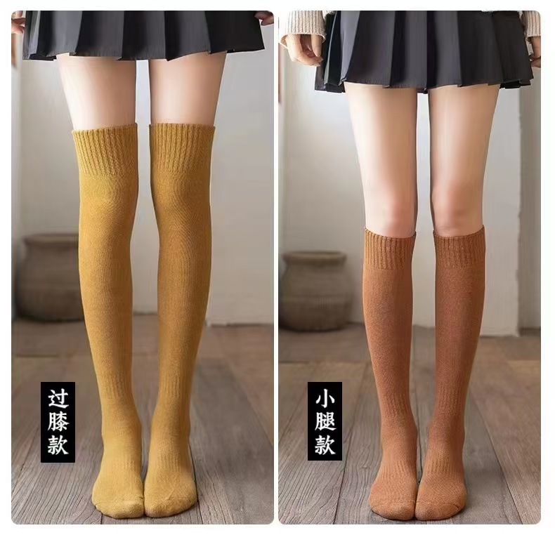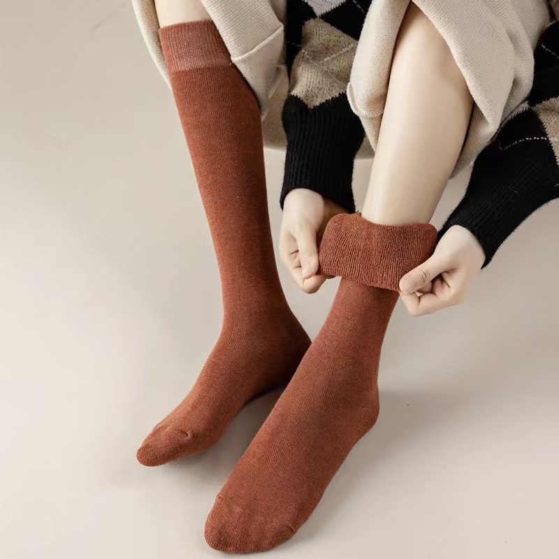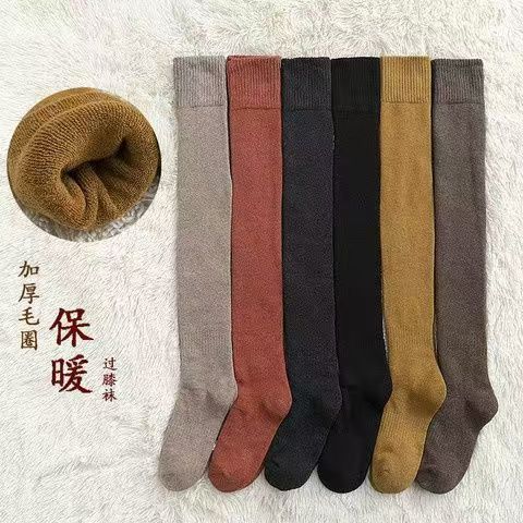 가을 겨울 여성용 슬림핏 기모 두꺼운 롱삭스, 테리 소재 종아리 양말, 여성용 롱삭스, 하이삭스, 무릎 위까지 오는 양말, 다용도