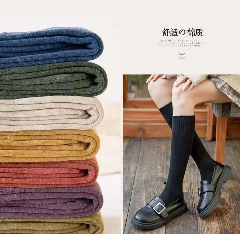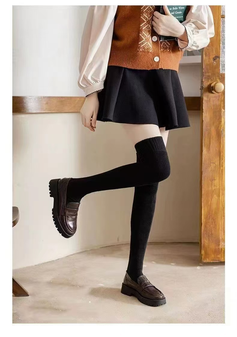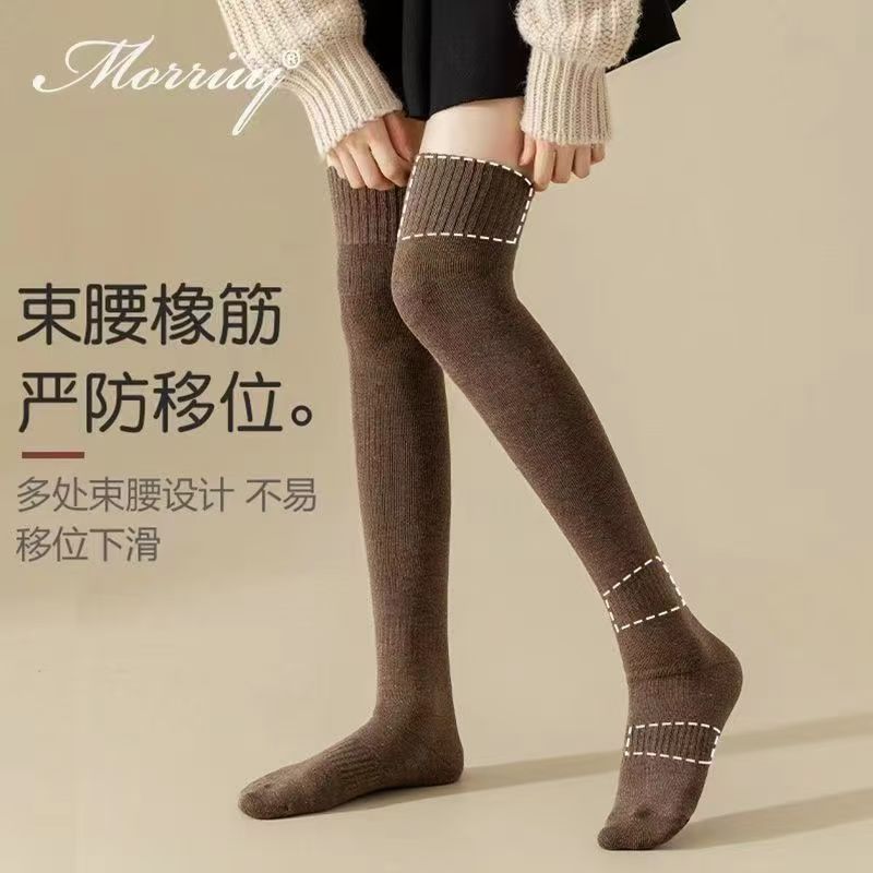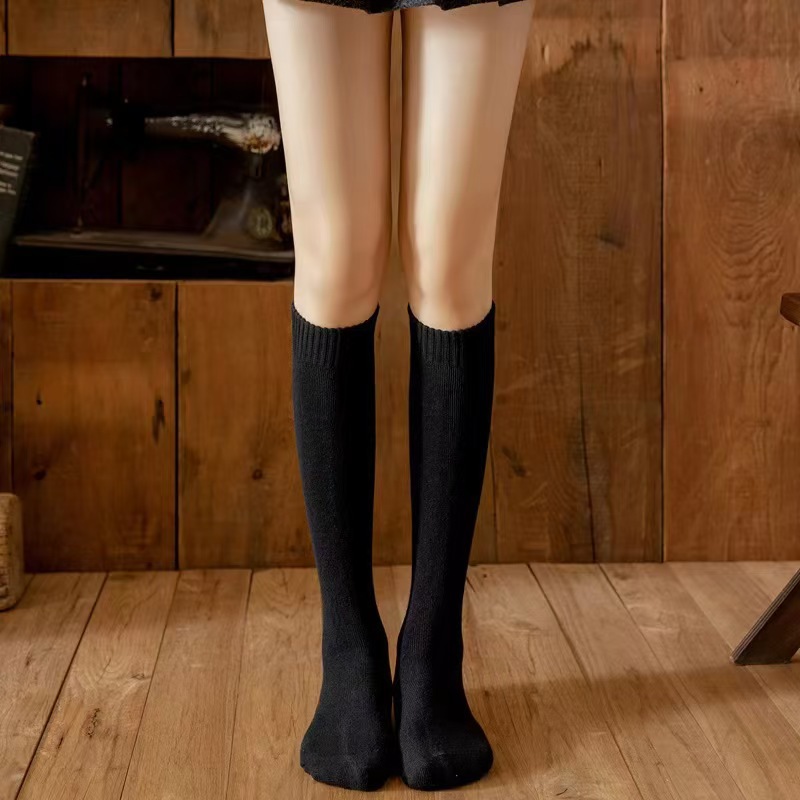 가을 겨울 여성용 슬림핏 기모 두꺼운 롱삭스, 테리 소재 종아리 양말, 여성용 롱삭스, 하이삭스, 무릎 위까지 오는 양말, 다용도스토어 가기