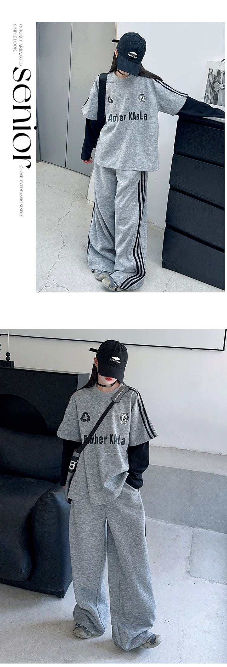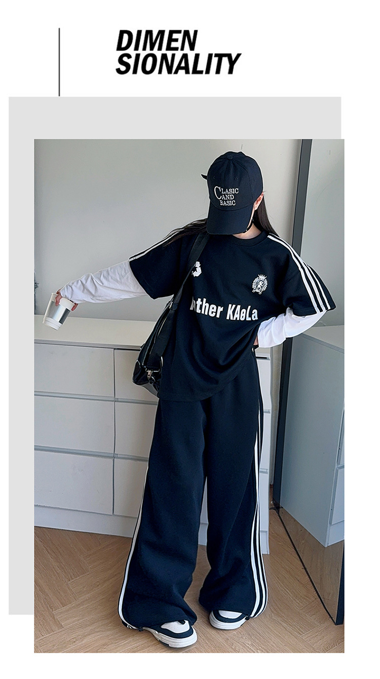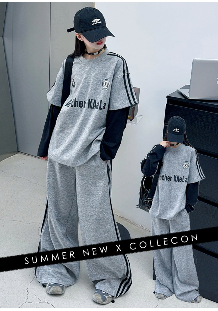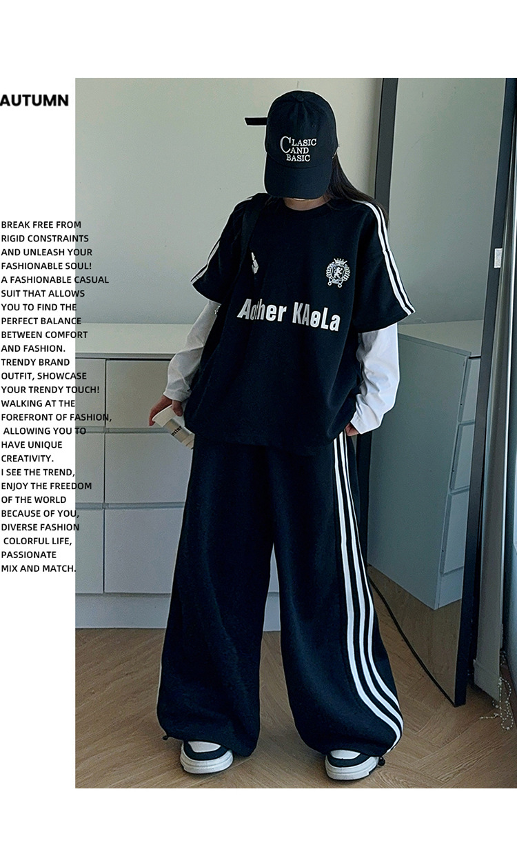 소녀 세트 봄과 가을 새로운 어린이 유행 편지 인쇄 가짜 투피스 티셔츠 넓은 다리 바지 스포츠 투피스 세트스토어 가기