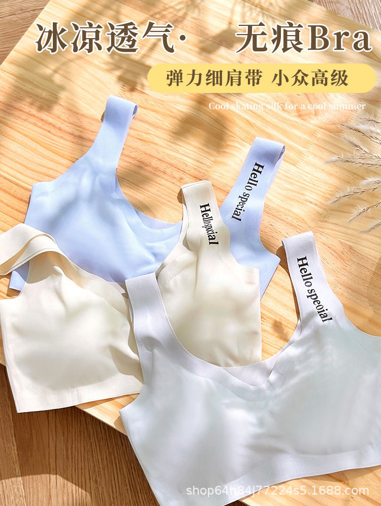 Girly Sense Traceless Ice Silk 근처 여학생 여름 스포츠 조끼 스타일의 무테 브라 얇은 조끼스토어 가기
