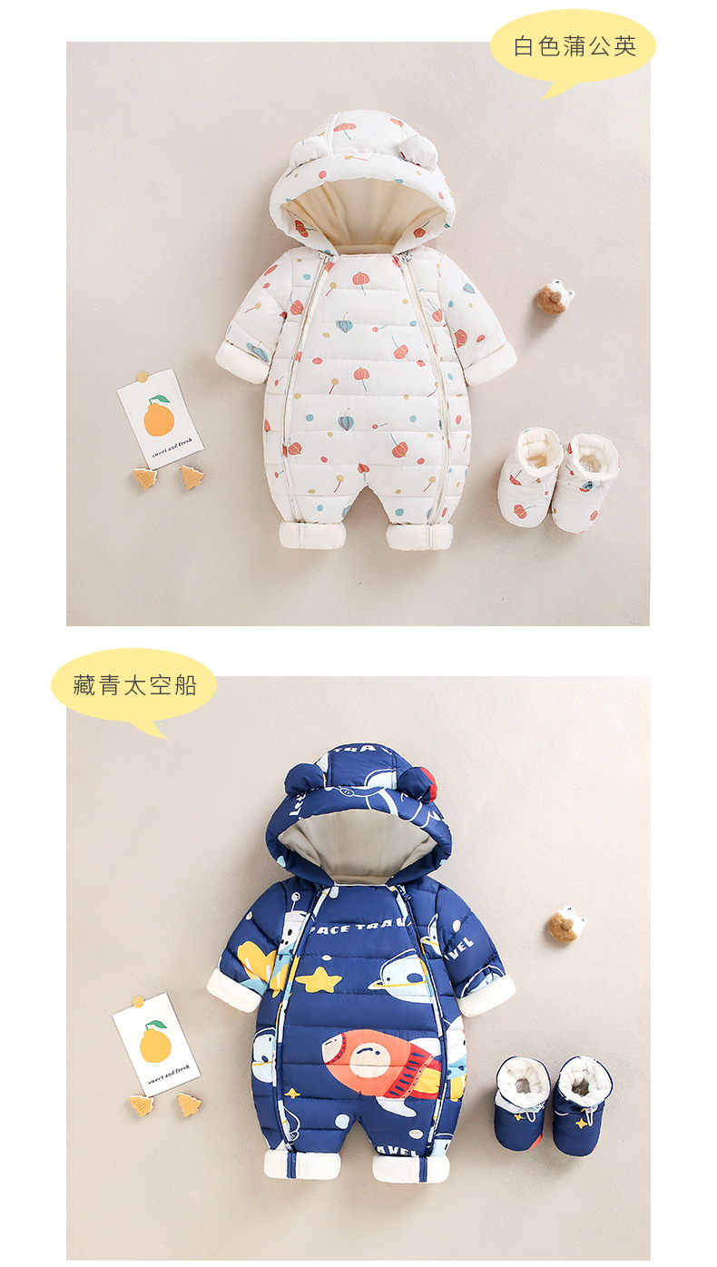 신생아 다운 코튼 점프 수트 아기 옷 가을과 겨울 세트 아기 소년과 소녀는 겨울 옷을 기모 옷을 들고 외출스토어 가기