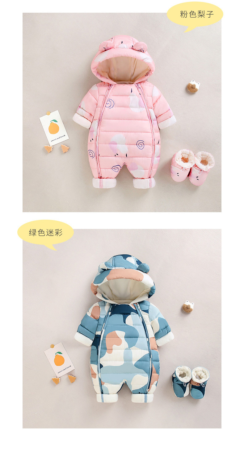 신생아 다운 코튼 점프 수트 아기 옷 가을과 겨울 세트 아기 소년과 소녀는 겨울 옷을 기모 옷을 들고 외출