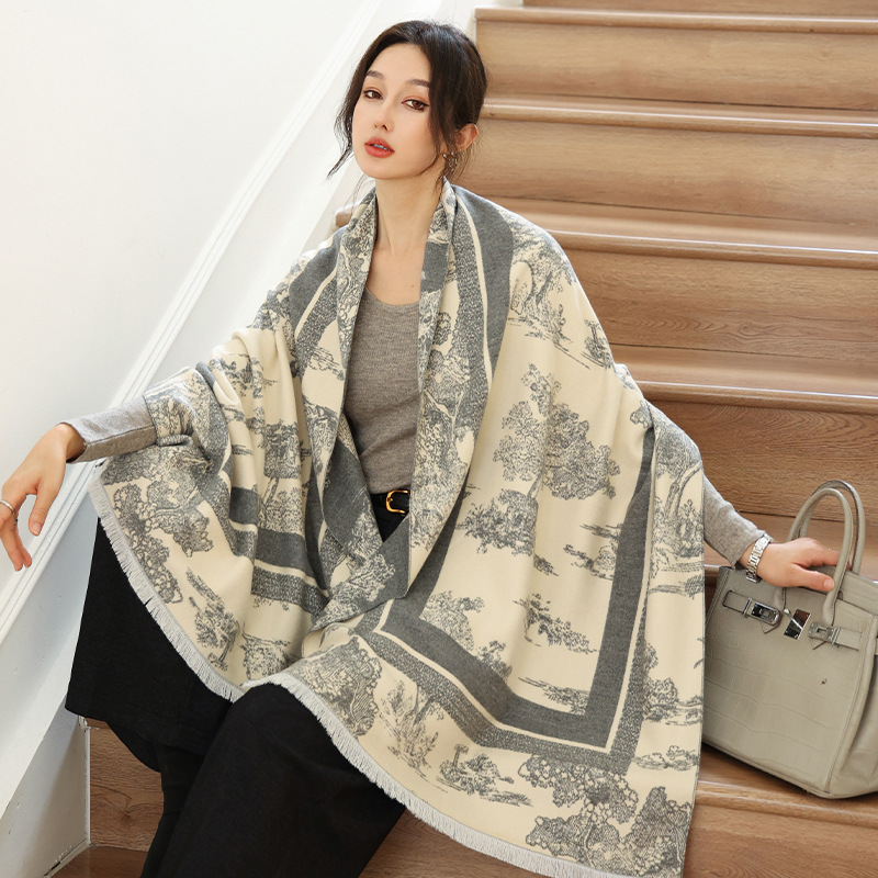 2004 년 새로운 캐시미어 스카프 여성의 두꺼운 긴 따뜻한 술 양모 스카프 선물 목도리 여성 외복스토어 가기