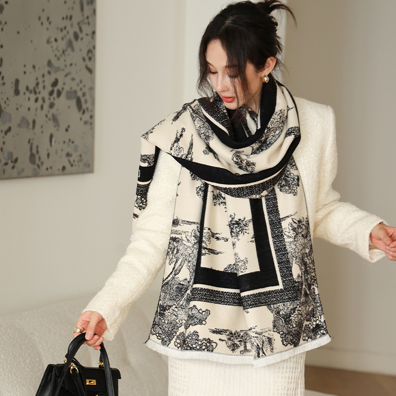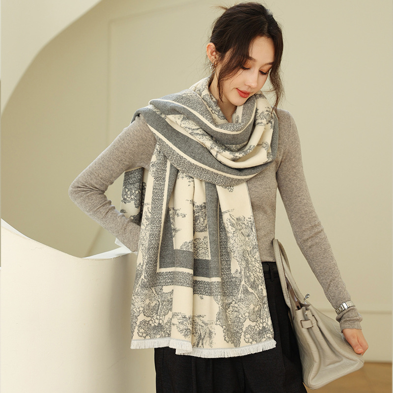 2004 년 새로운 캐시미어 스카프 여성의 두꺼운 긴 따뜻한 술 양모 스카프 선물 목도리 여성 외복