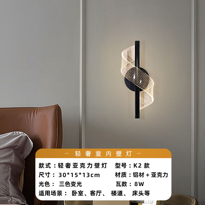 • K2 모델 - 3색 디밍 - 가벼운 럭셔리 아크릴 벽 램프