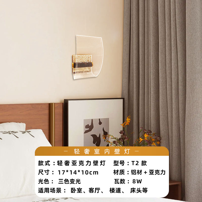 라이트 럭셔리 벽 램프 북유럽 침실 침실 램프 거실 아크릴 현대 미니멀리스트 계단 멀리 배경 벽 램프