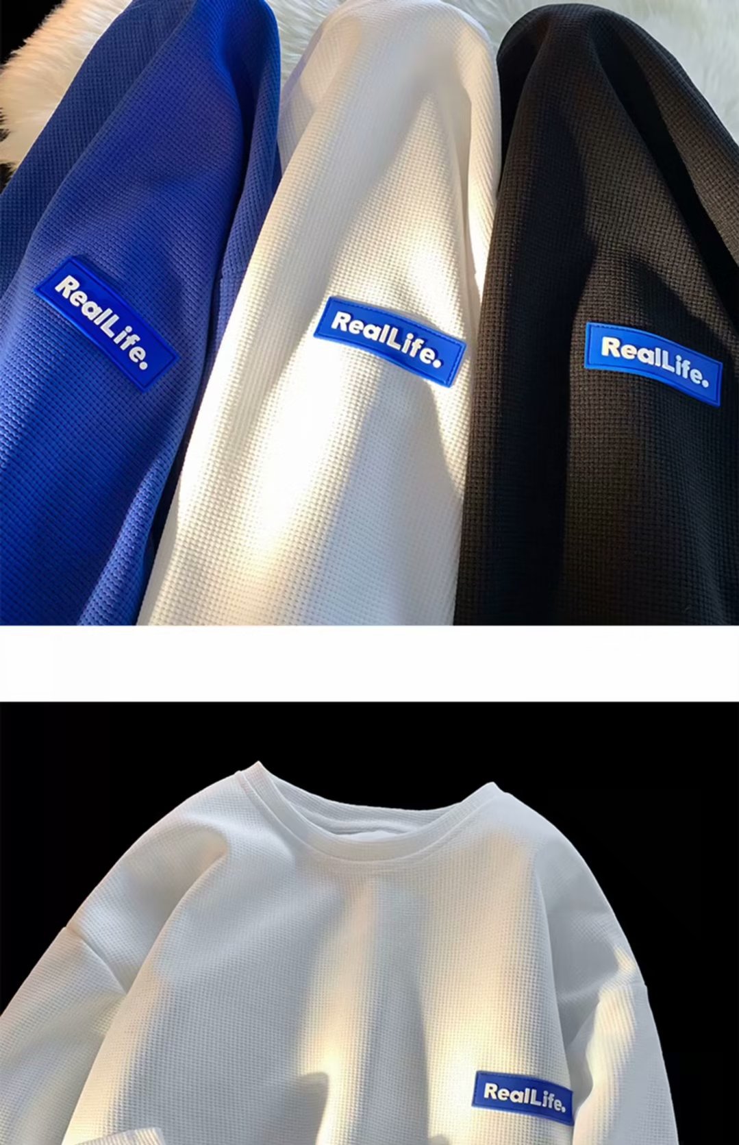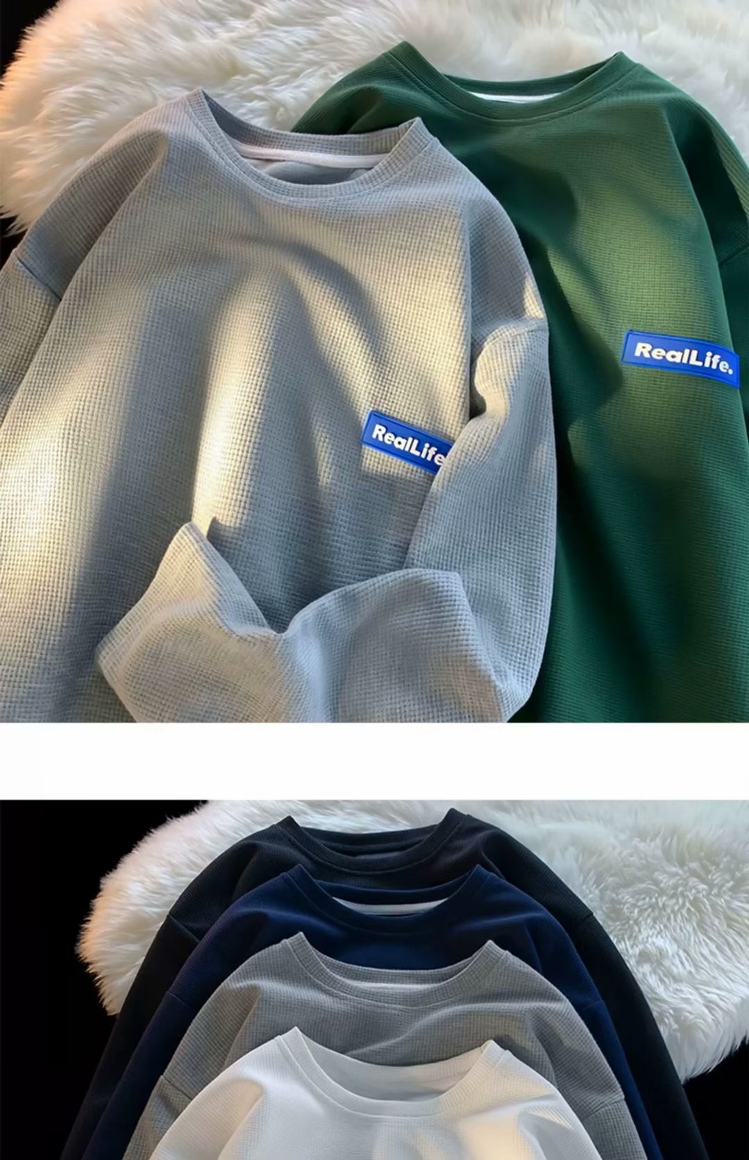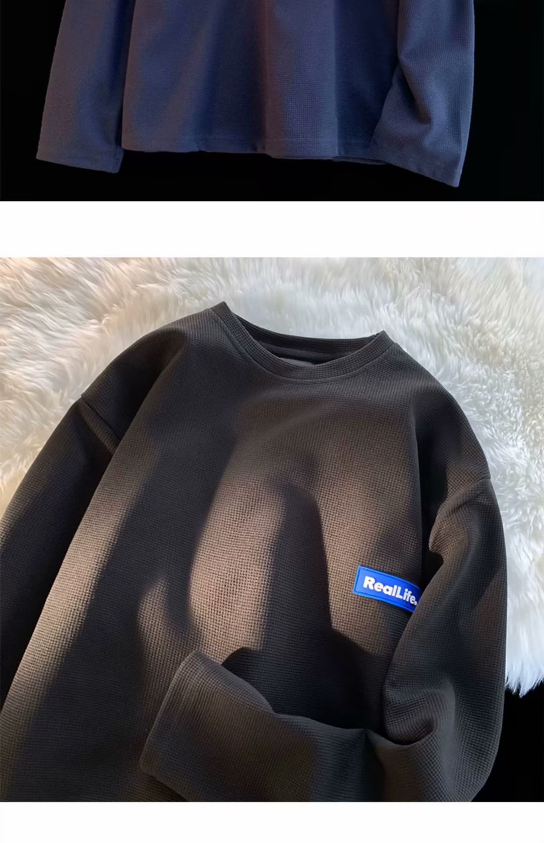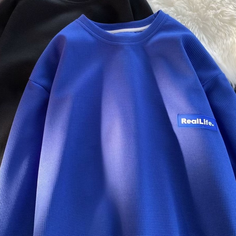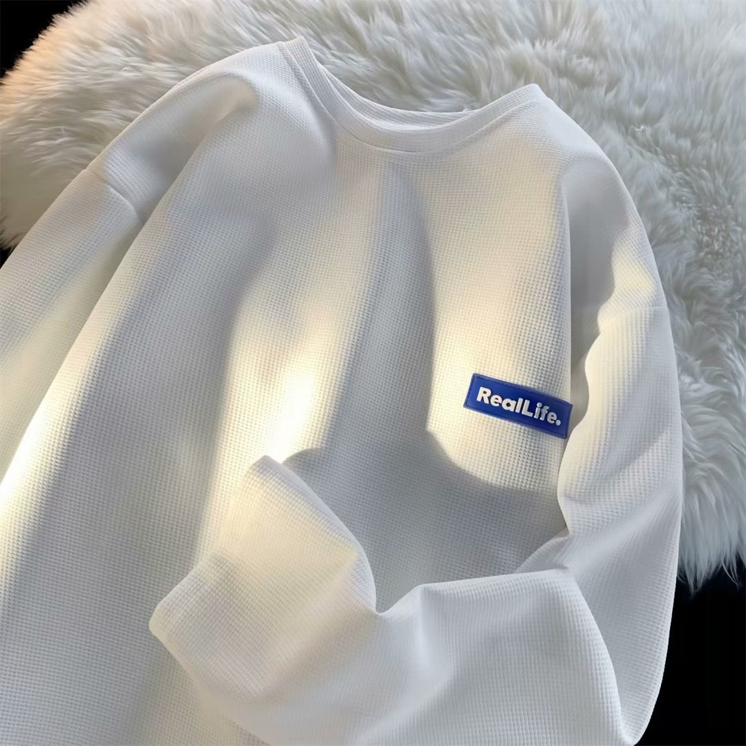 긴팔 티셔츠 남성용 봄과 가을 헤비 트렌디 브랜드 와플 크루 넥베이스 셔츠 티셔츠 내부 하이 엔드 스웨터스토어 가기