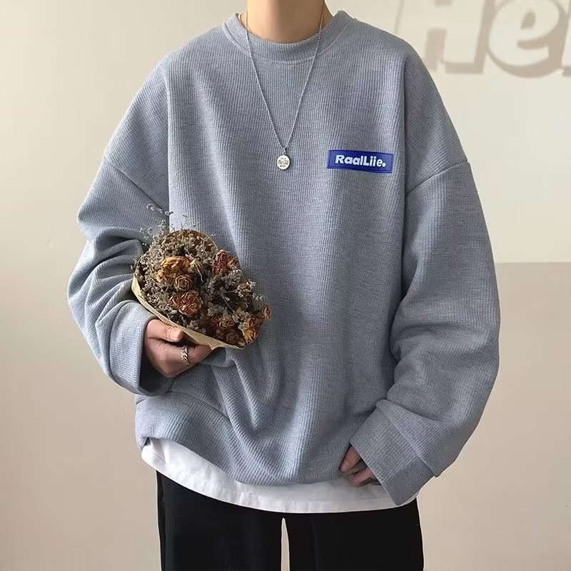 긴팔 티셔츠 남성용 봄과 가을 헤비 트렌디 브랜드 와플 크루 넥베이스 셔츠 티셔츠 내부 하이 엔드 스웨터
