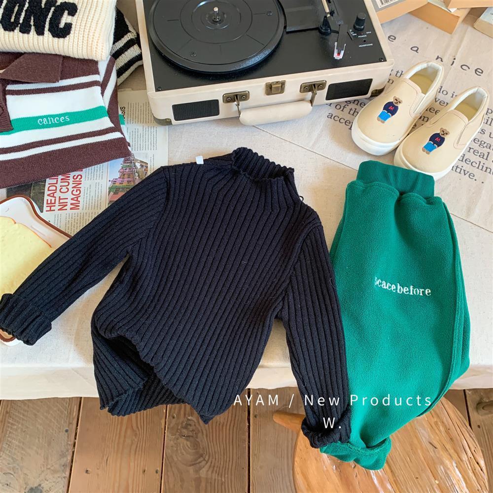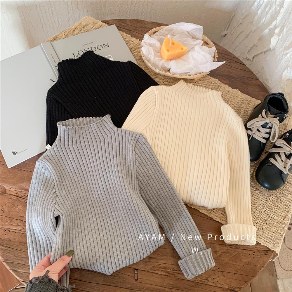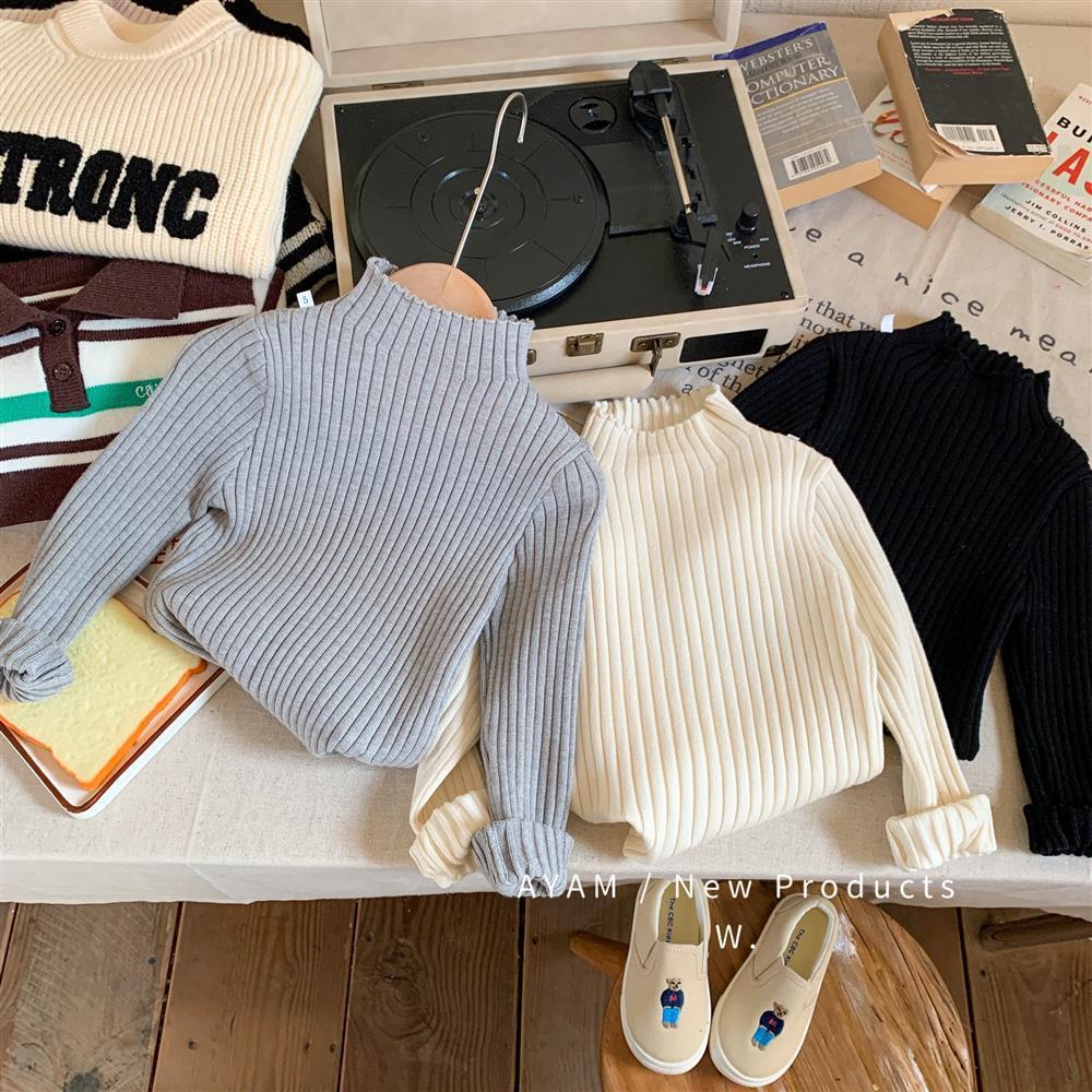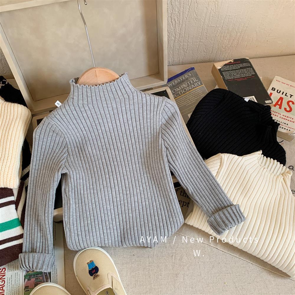 어린이용 스웨터 2025년 신상 남아 여아 가을 겨울 골지 풀오버 하이넥 신축성 슬림핏 캐주얼 니트웨어