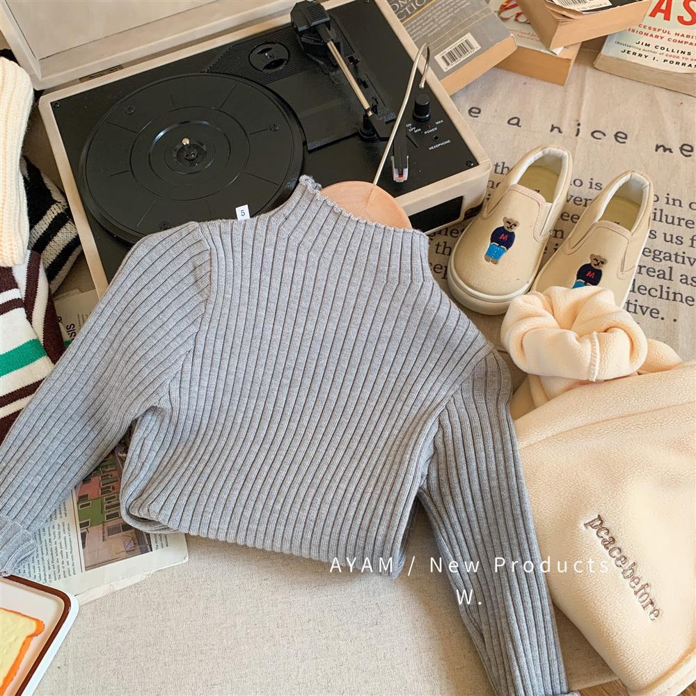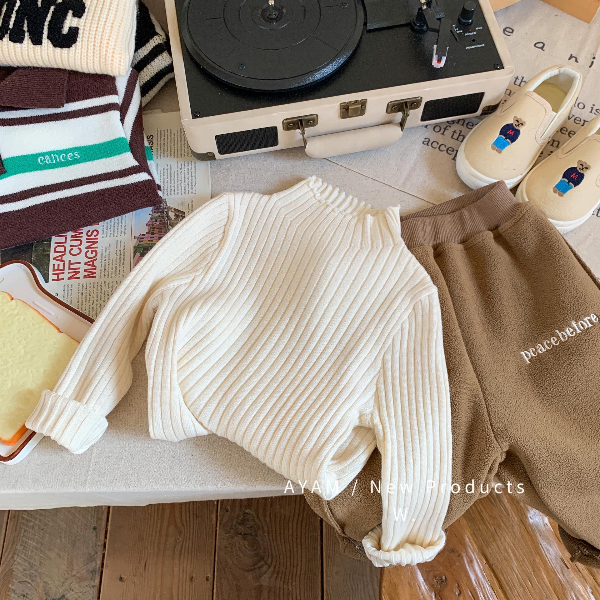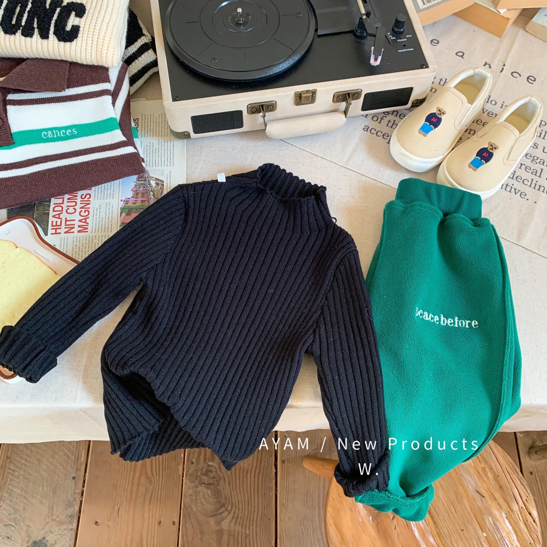 어린이용 스웨터 2025년 신상 남아 여아 가을 겨울 골지 풀오버 하이넥 신축성 슬림핏 캐주얼 니트웨어