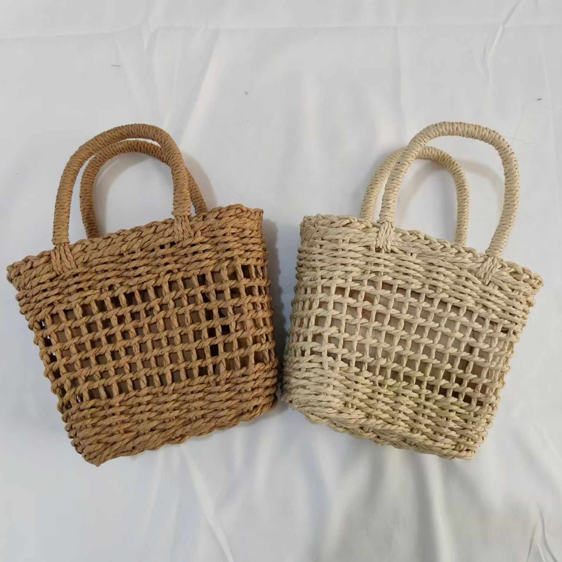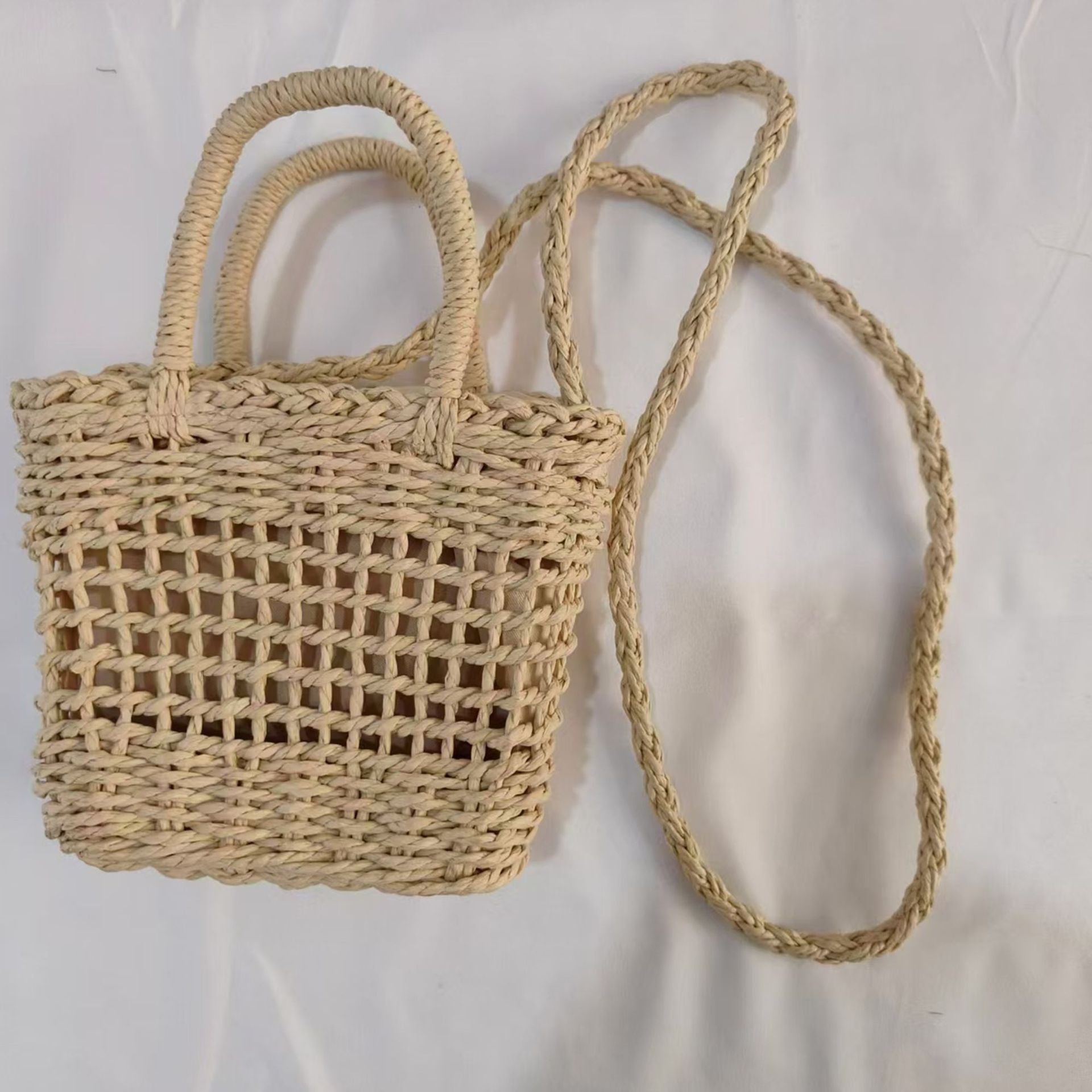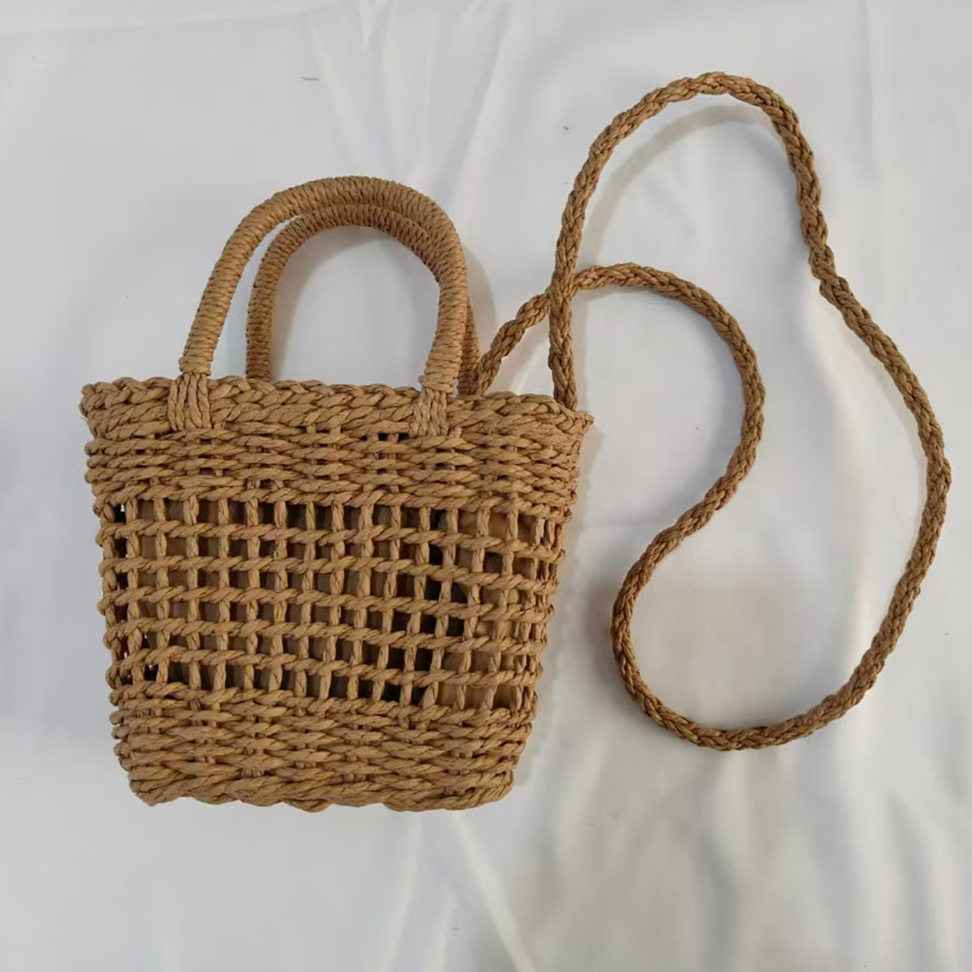 새로운 중공 휴대용 크로스 바디 백 작은 사각형 가방 수제 짠 밀짚 가방 간단한 캐주얼 해변 휴가 가방스토어 가기