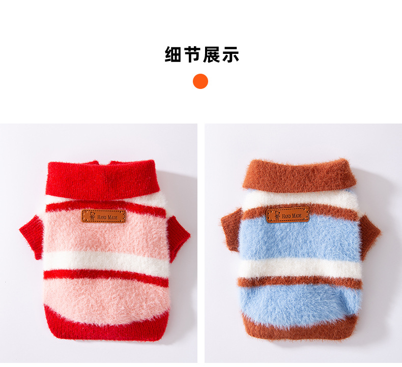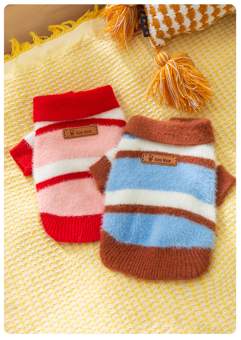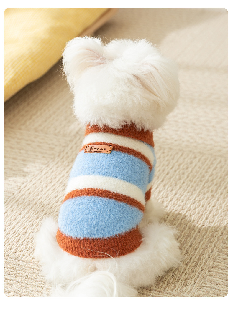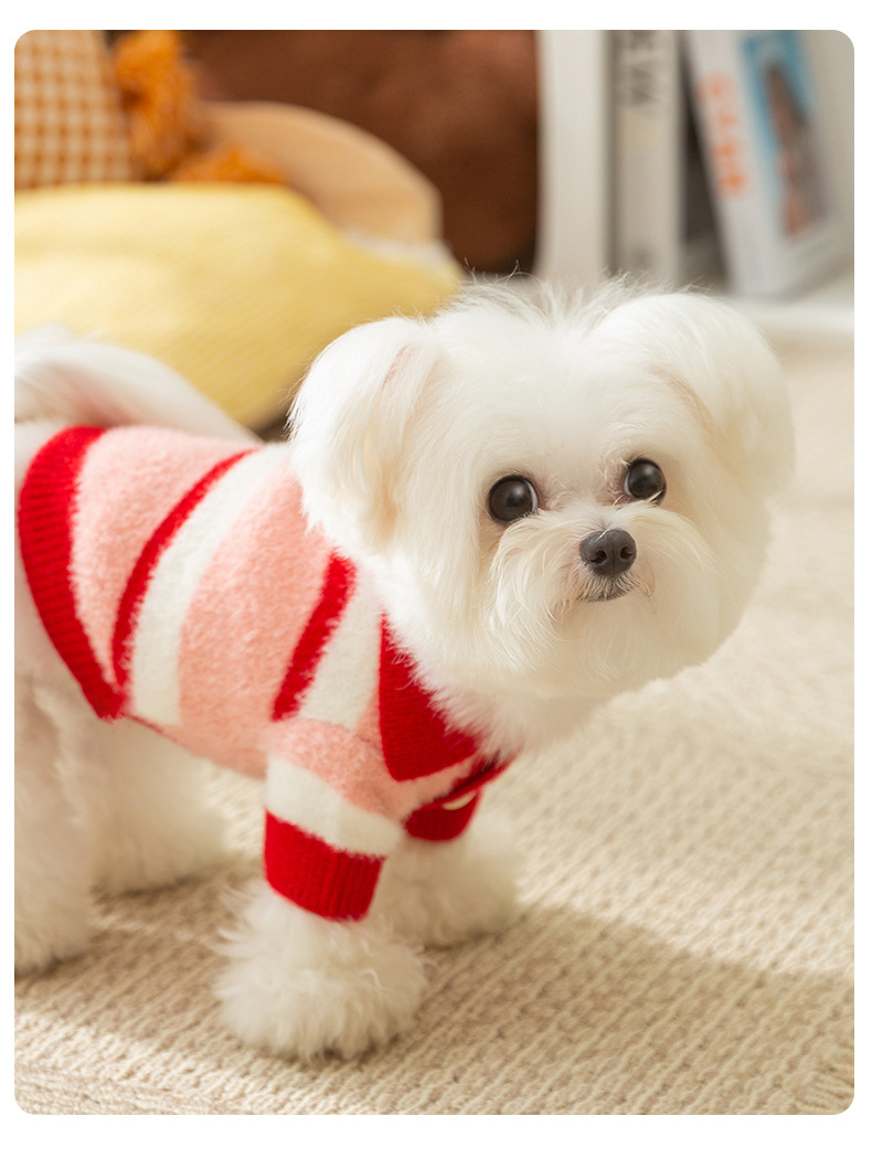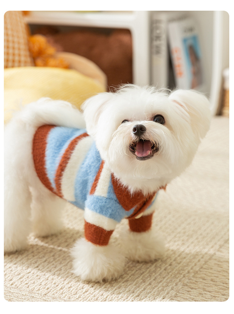 가을과 겨울 두꺼운 따뜻한 개 POLO 칼라 클래식 스트라이프 카디건 스웨터 중형 및 작은 개 고양이 애완 동물 옷