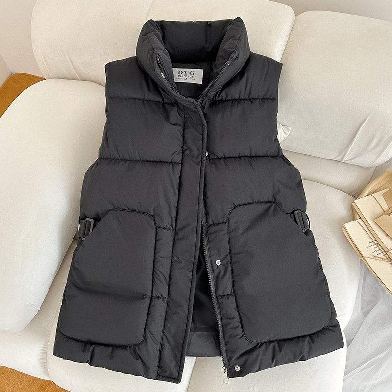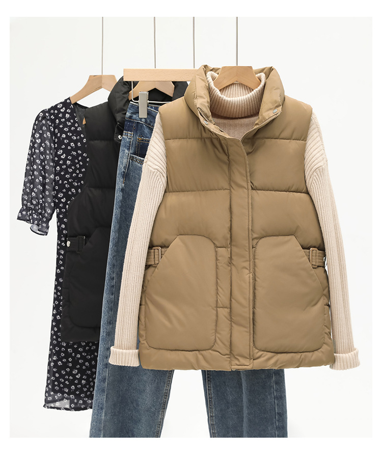 다운 코튼 조끼 여성 슬림 룩 웨스턴 스타일 2024 새로운 패션 유행 수직 칼라 조끼 타이트 웨이스트 올 매치 민소매 웨이스트 코트