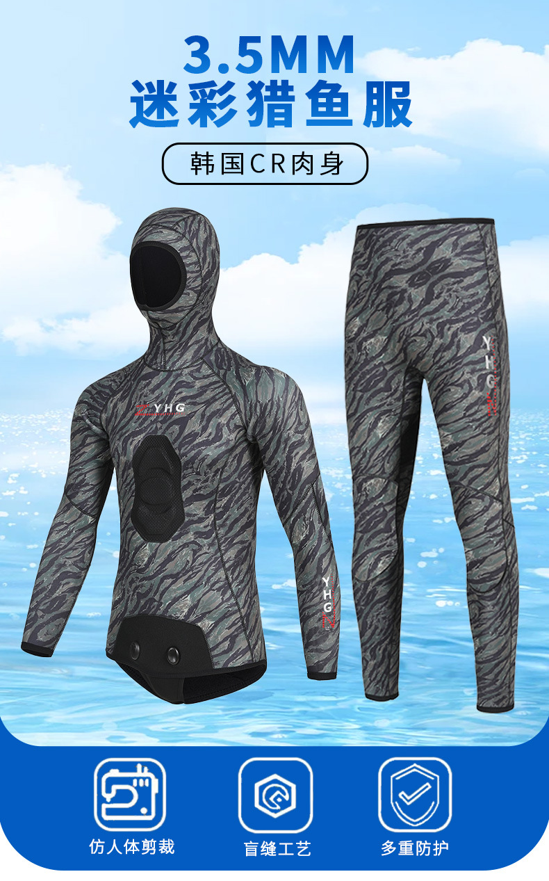 5mm 물고기 사냥 세트 두꺼운 남자의 긴 소매 바지 다이빙 세트 여성용 위장 서퍼 냉장 따뜻한 겨울 수영 젖은 옷스토어 가기