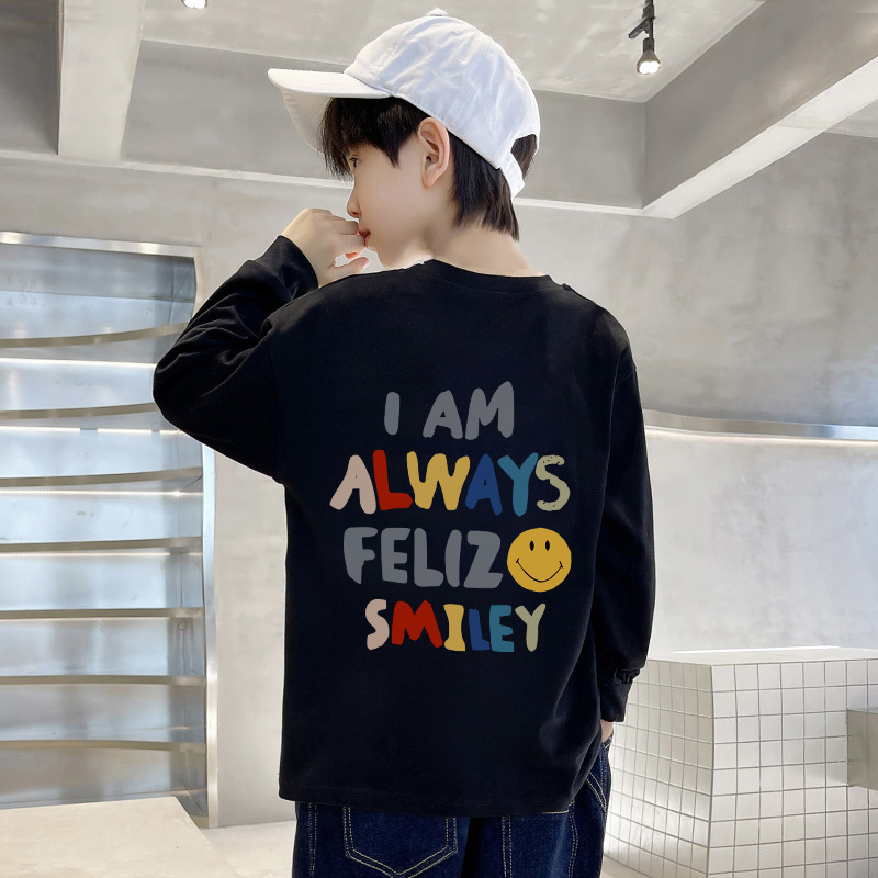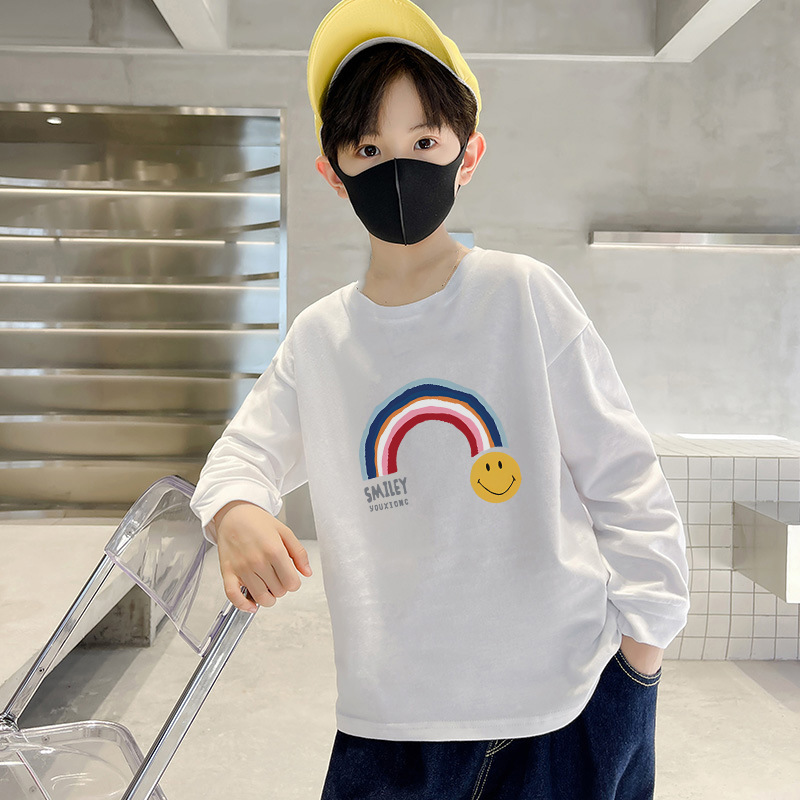 220g 순면 무거운 무게 아동복 소년 티셔츠 긴 소매 가을 어린이 큰 소년 코트 반소매 바닥 셔츠스토어 가기