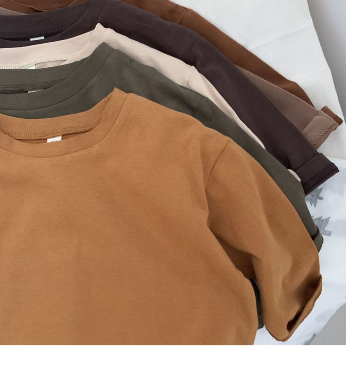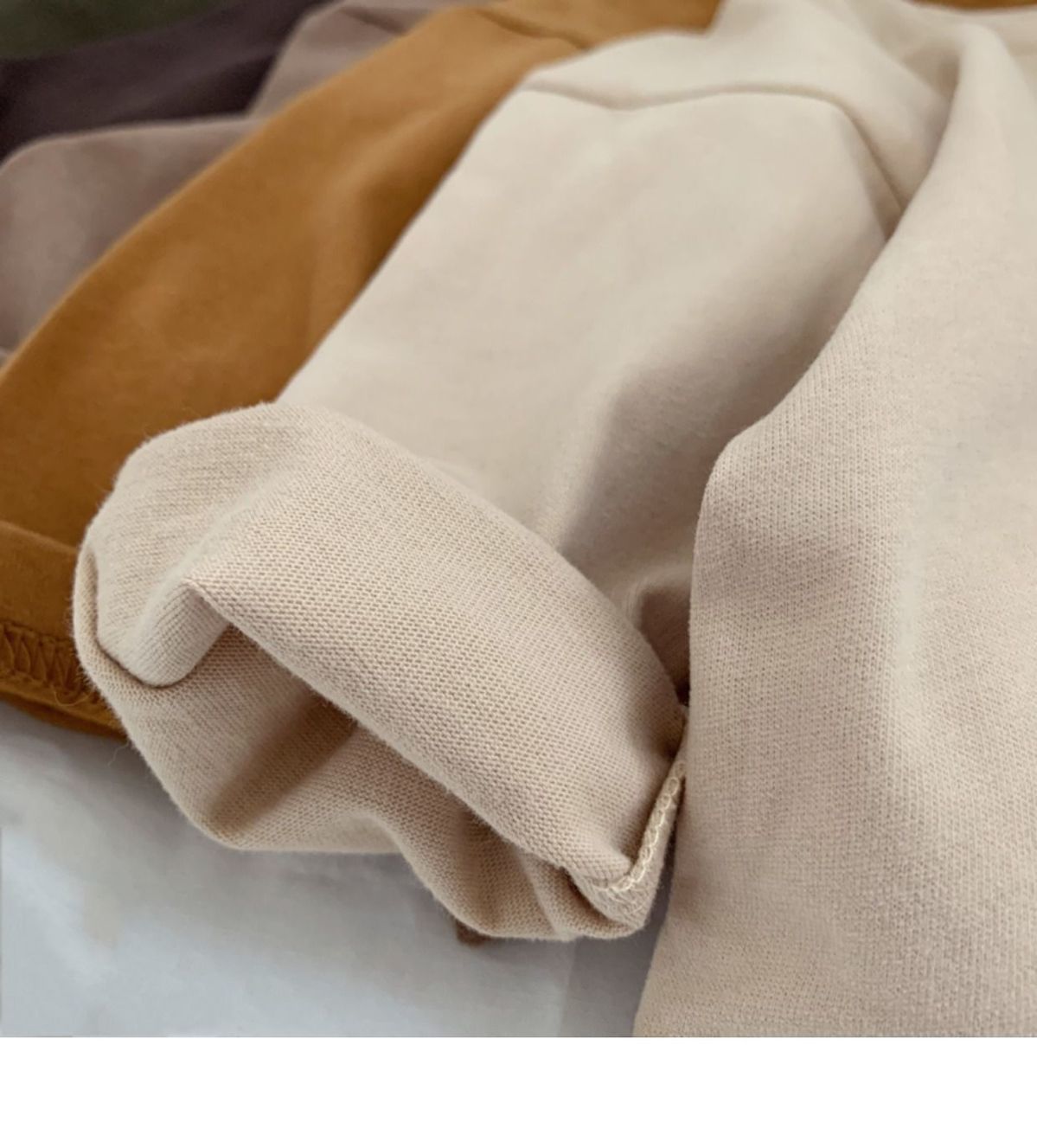 봄과 가을 남녀 아동복 티셔츠 아기의 서양식 어린이 성격 유행 일본 스타일 복고풍 단색 순면 베이스 셔츠 탑