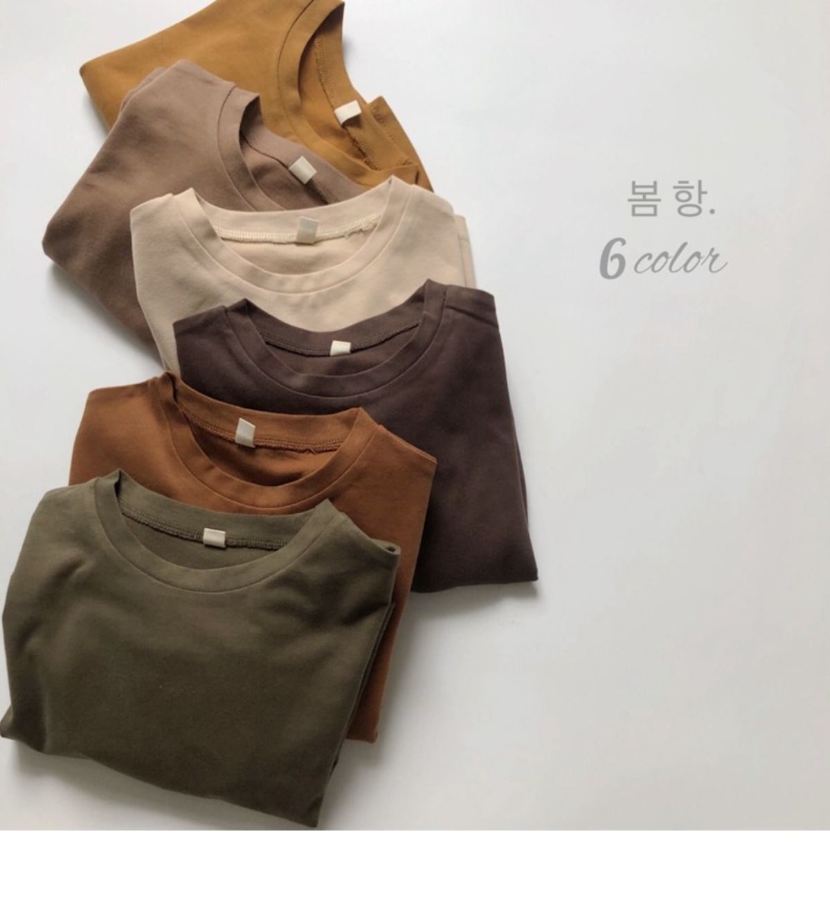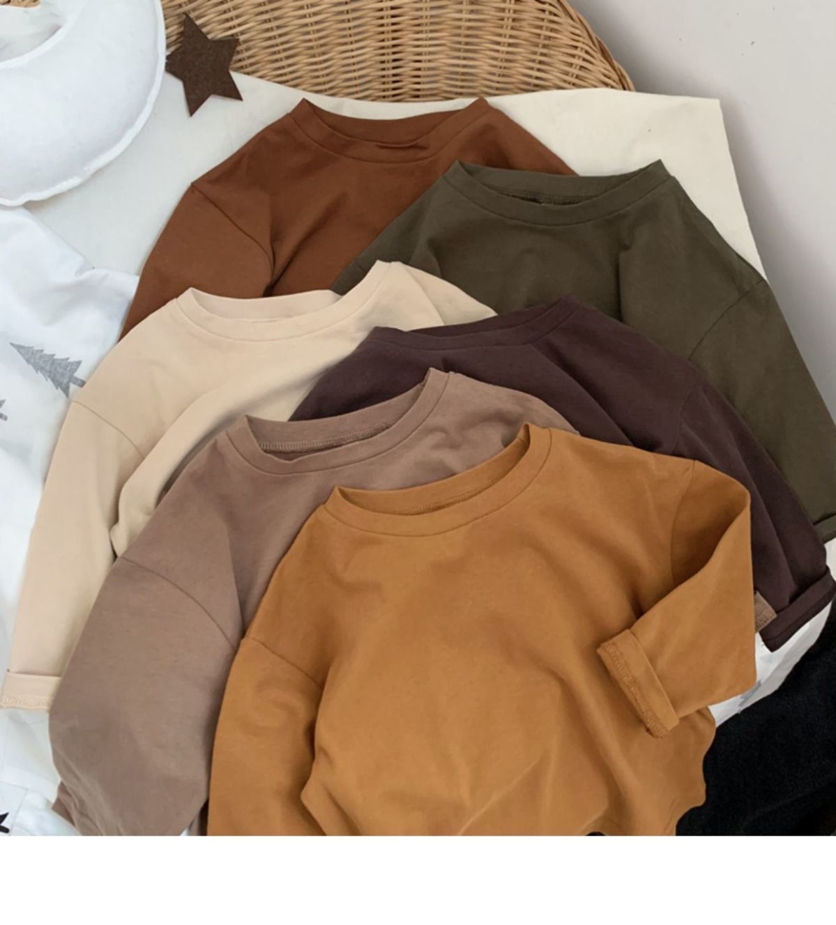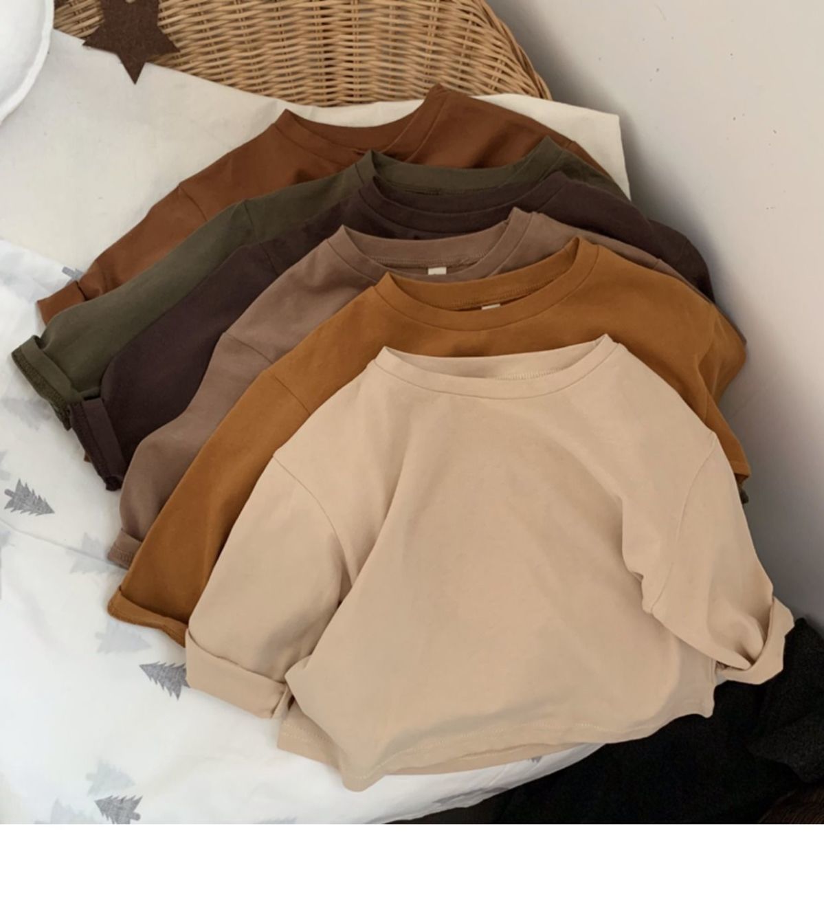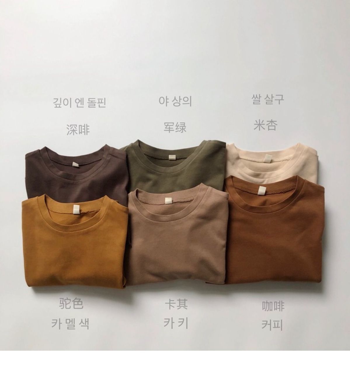 봄과 가을 남녀 아동복 티셔츠 아기의 서양식 어린이 성격 유행 일본 스타일 복고풍 단색 순면 베이스 셔츠 탑스토어 가기