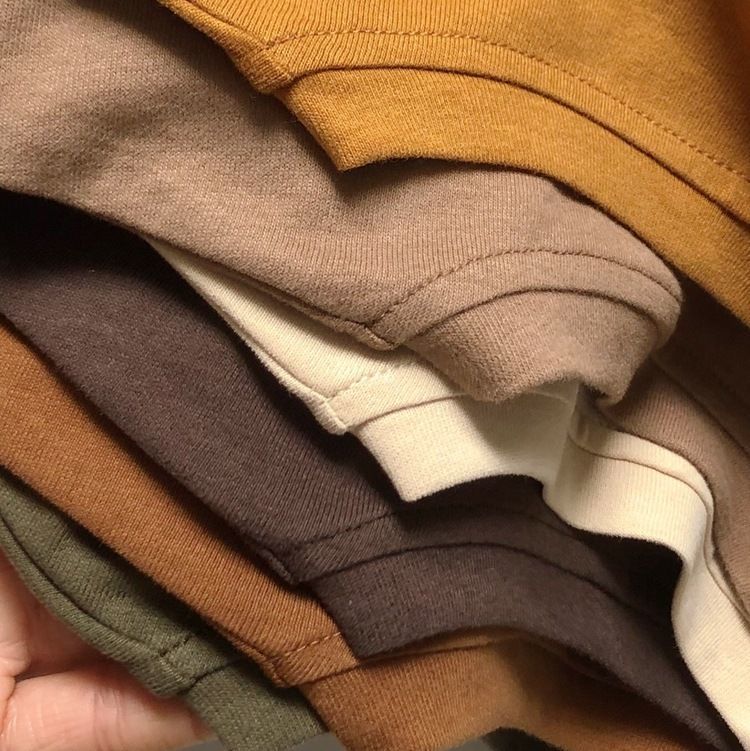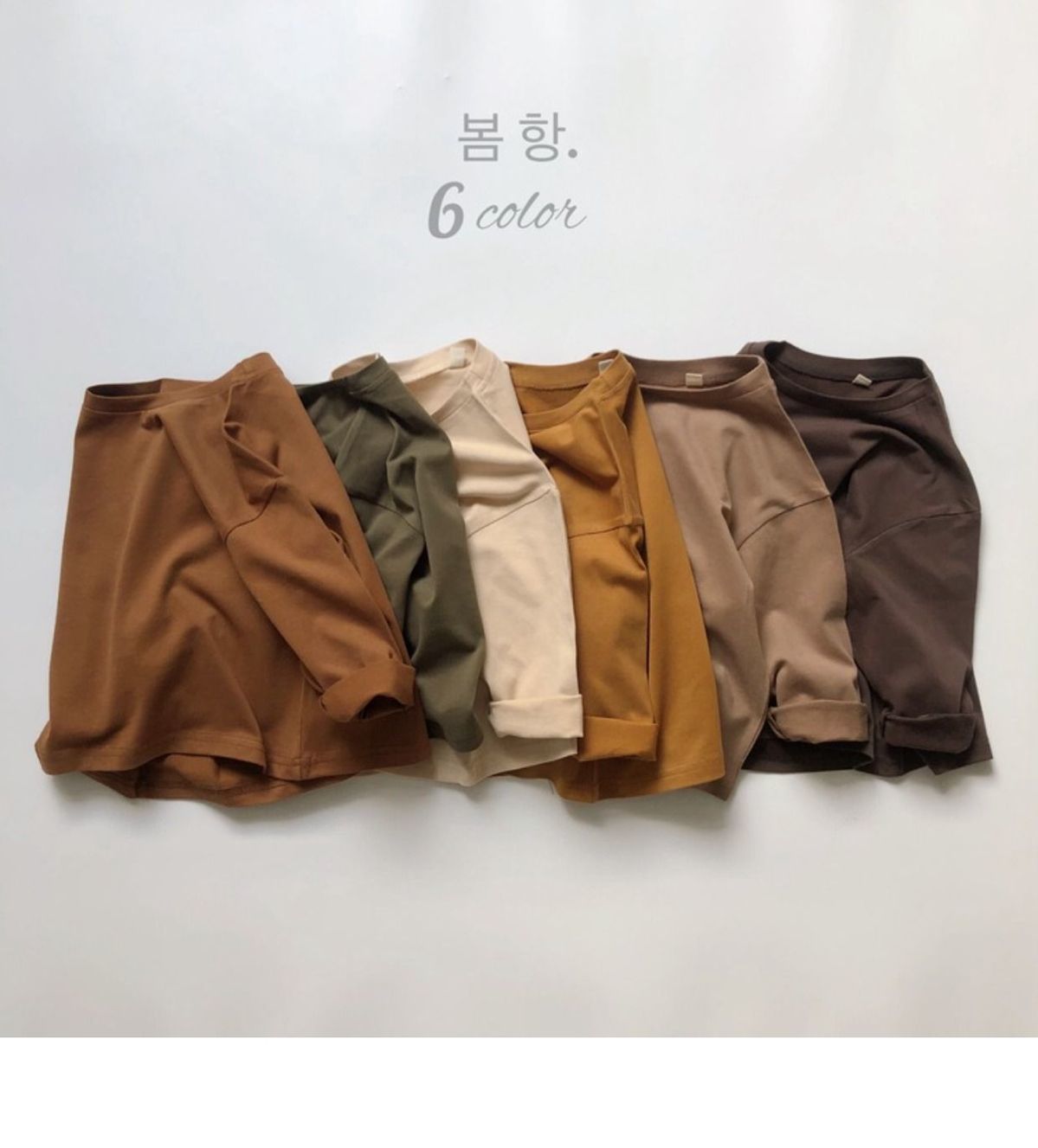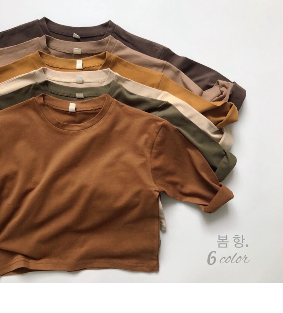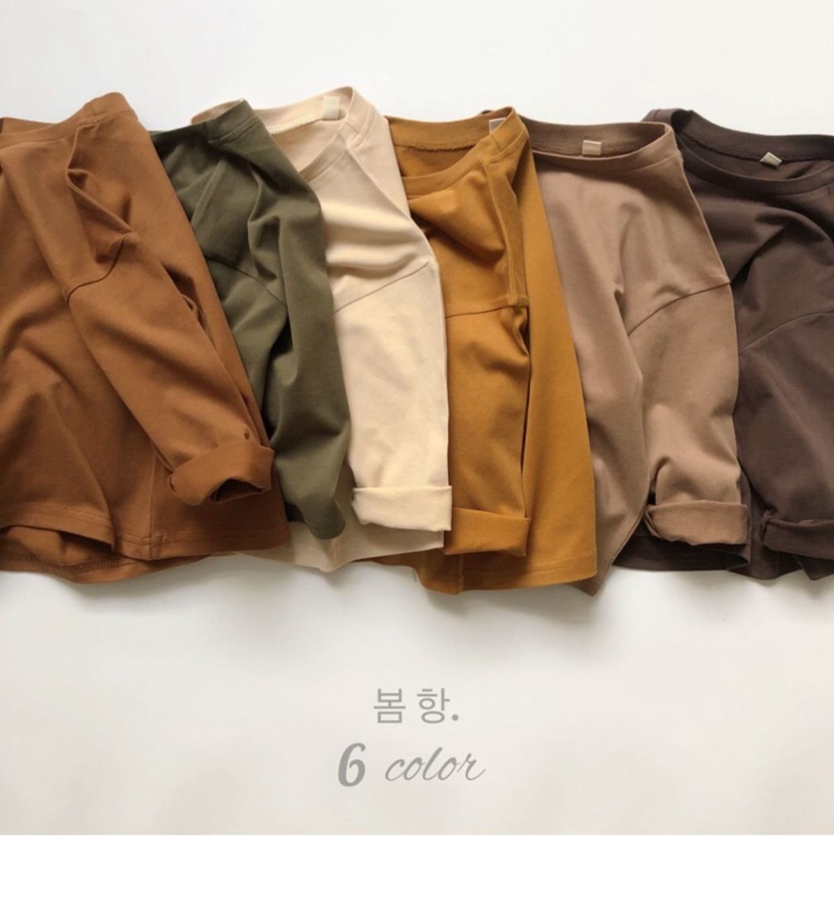 봄과 가을 남녀 아동복 티셔츠 아기의 서양식 어린이 성격 유행 일본 스타일 복고풍 단색 순면 베이스 셔츠 탑스토어 가기