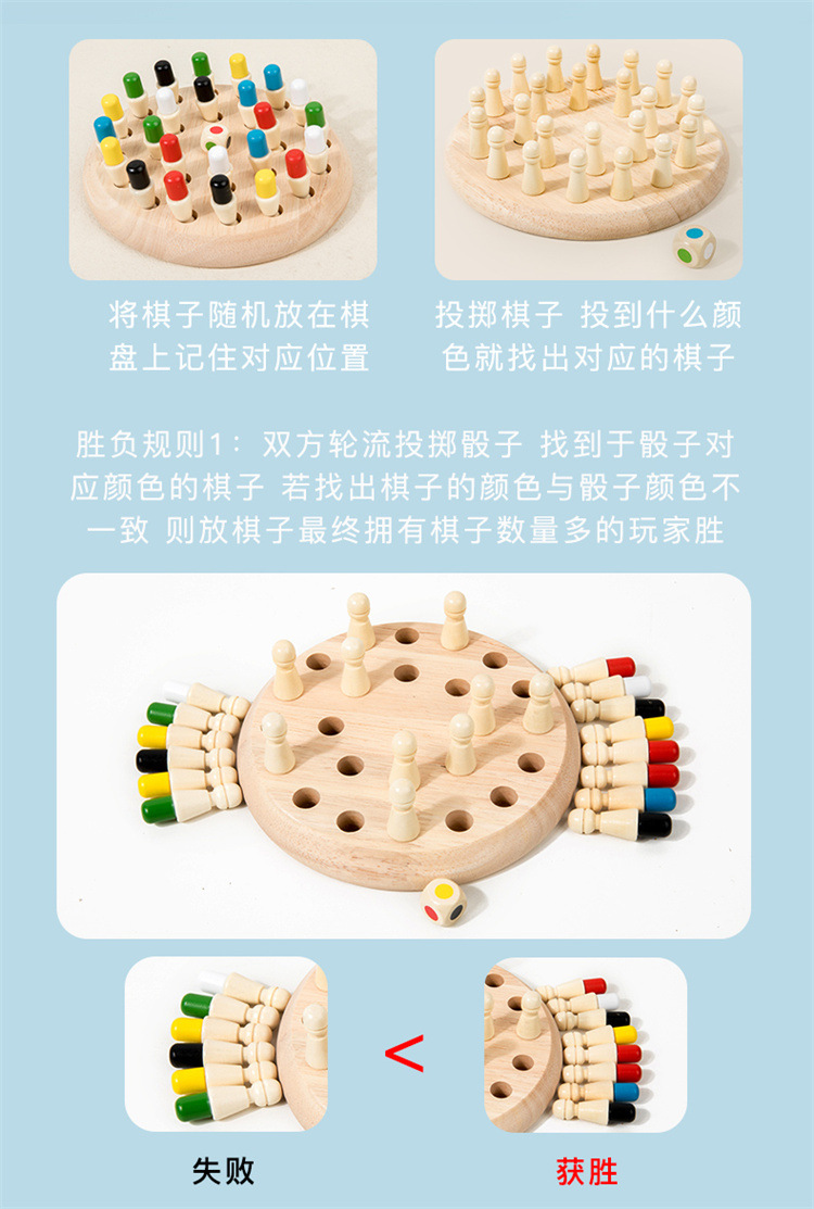 Weiwihu 나무 놀이 색상 메모리 체스 어린이 집중력 훈련 메모리 체스 아기 조기 교육 나무 교육 장난감스토어 가기