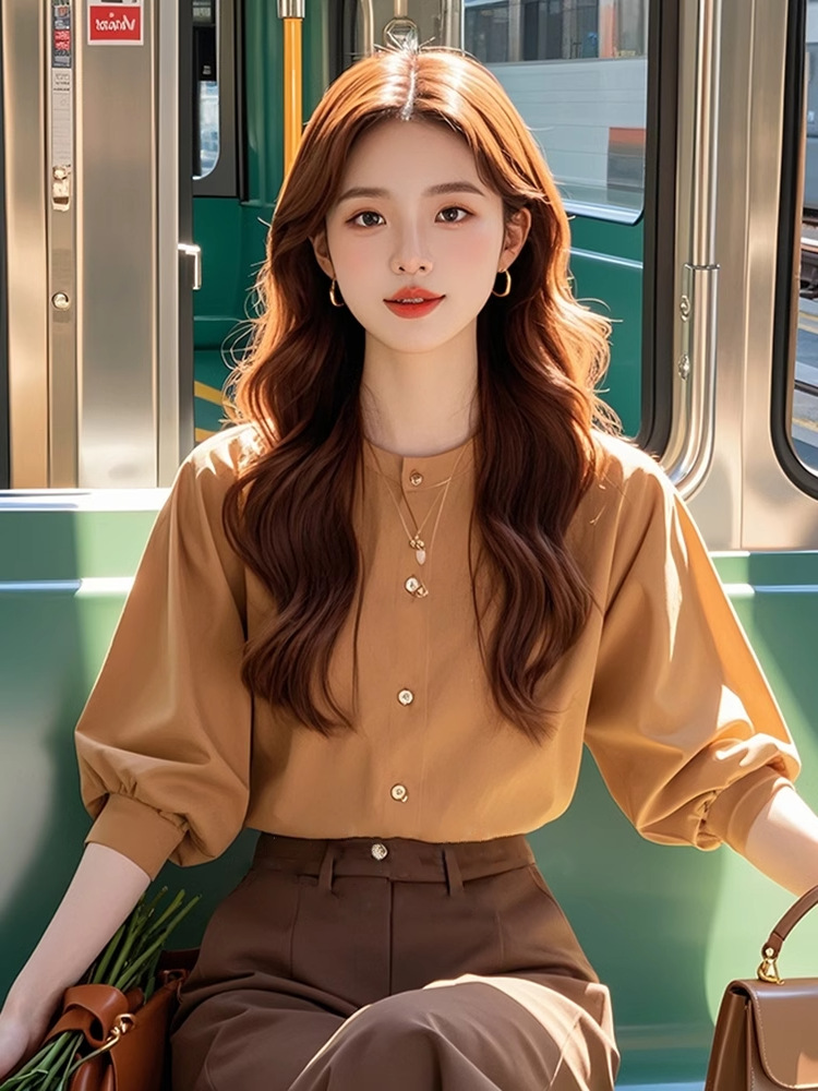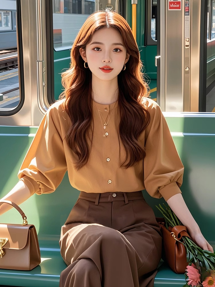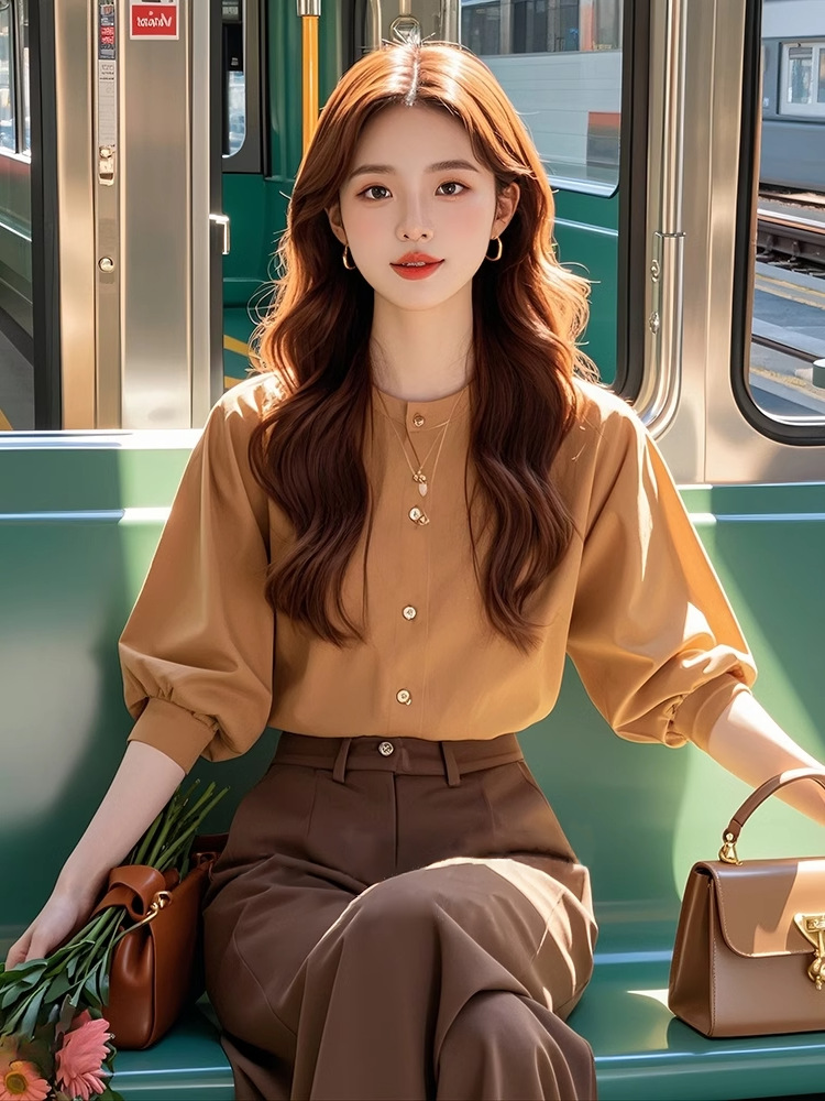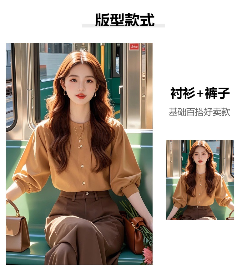 가을은 하이 엔드 여성 패션 전문 작은 향기로운 스타일 다크 브라운 셔츠 넓은 다리 바지 세트 패션을 착용합니다.스토어 가기