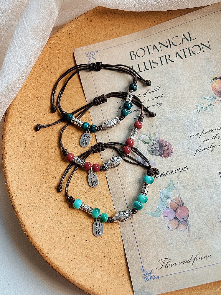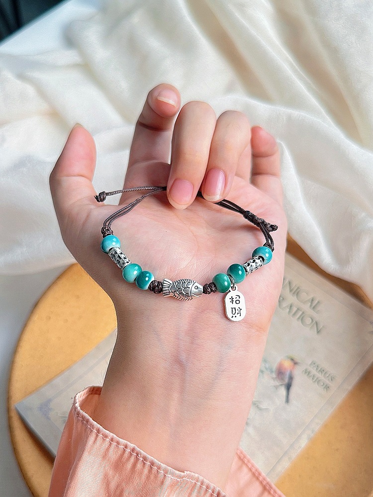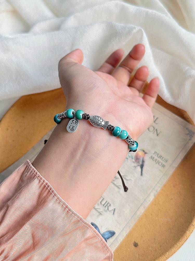 해마다 생선 예술 짠 Jingdezhen 세라믹 팔찌 국가 스타일 Nafu 새로운 중국 학생 손 로프 선물이 있습니다.스토어 가기