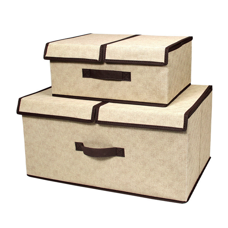 면 및 린넨 더블 뚜껑 보관 상자 하위 형식 접이식 직물 의류 보관 상자 홈 옷장 보관 상자 도매
