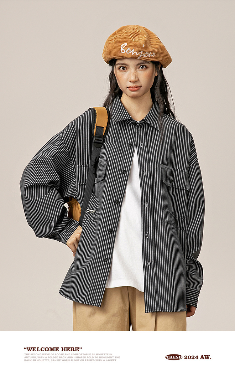 하이 퀄리티 패션 브랜드 남성 2024 가을 새로운 남성 옥스포드 섬유 하이 스트리트 툴링 바람 느슨한 긴 소매 셔츠 셔츠스토어 가기