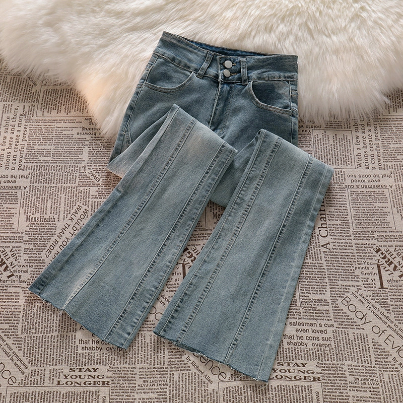 슬림 핏 복고풍 노예 청바지 여성용 탄성 더블 버클 디자인 향수 높은 허리 말굽 바지