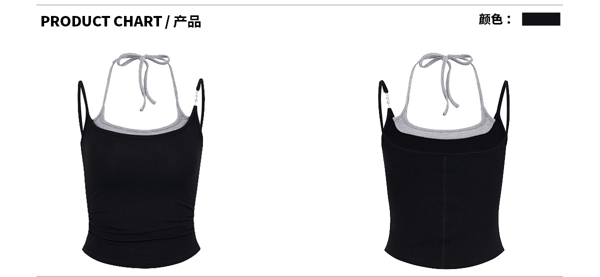 2024 여름 현악 스파이스 소녀 스타일 슬링 티셔츠 여성용 작은 하이 스트리트 미국 허리 가짜 투피스 짧은 조끼스토어 가기