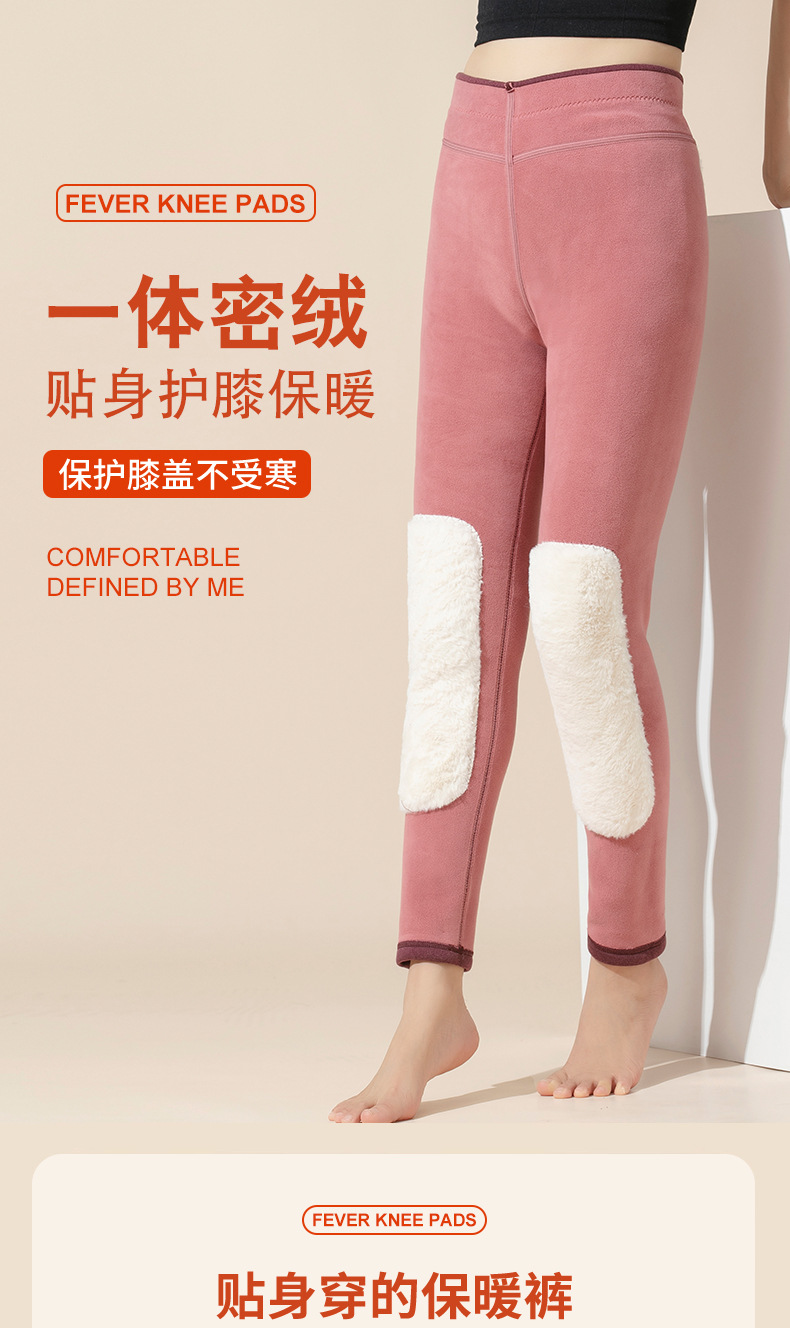 여자의 따뜻한 바지 기모 두꺼운 높은 허리 무릎 패드 레깅스 가을 겨울 착용 플러스 사이즈 원피스 면 바지