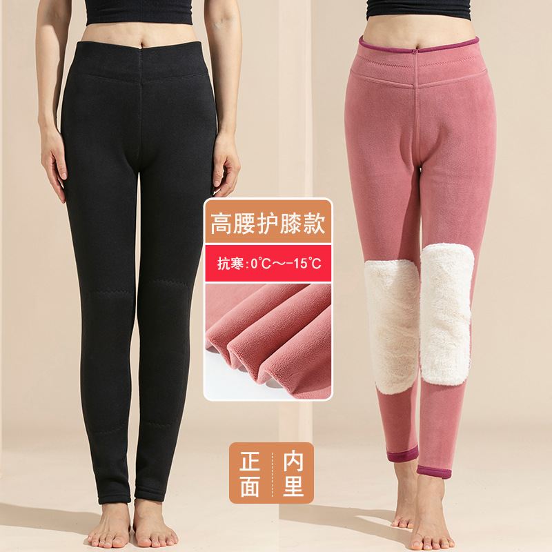 여자의 따뜻한 바지 기모 두꺼운 높은 허리 무릎 패드 레깅스 가을 겨울 착용 플러스 사이즈 원피스 면 바지스토어 가기