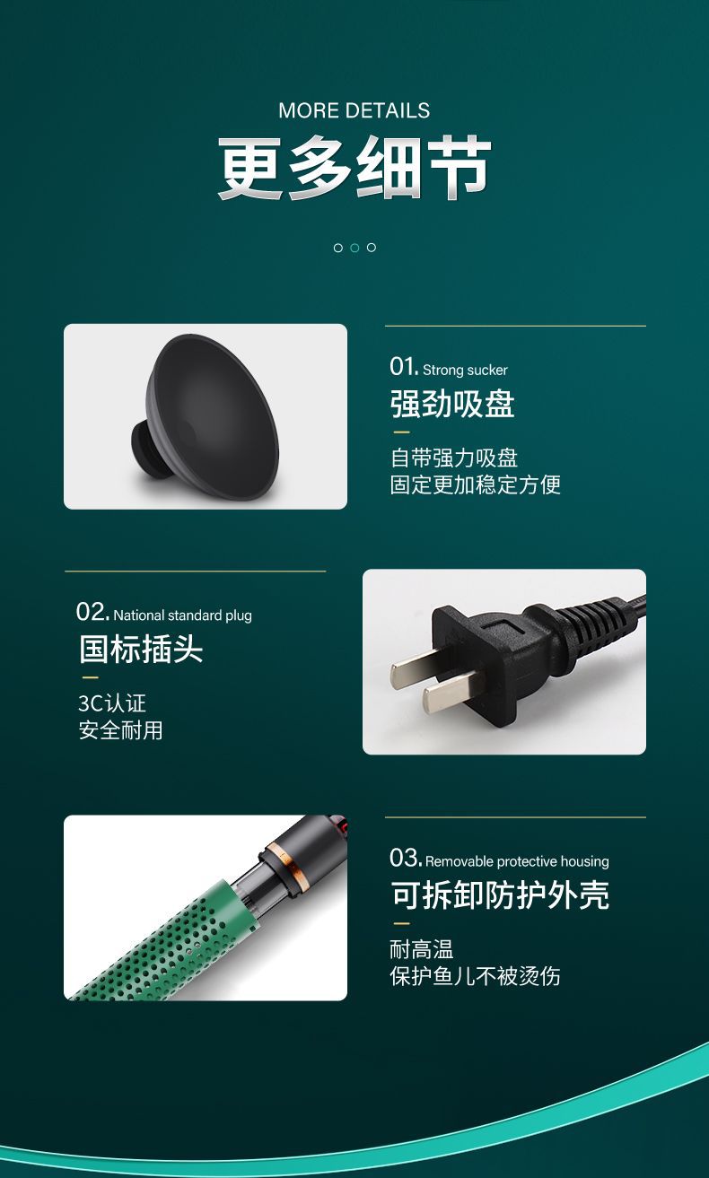 SQG 어항 가열봉 자동 일정한 온도 석영 유리 히터 전원 절약 작은 가열봉 거북이 히터