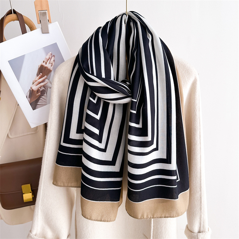샤넬 스타일 새로운 Lengthen 인쇄 스카프 줄무늬 스카프 스카프 코튼 및 리넨 선 스크린 목도리 올매치 가을과 겨울 머리 스카프 여성스토어 가기