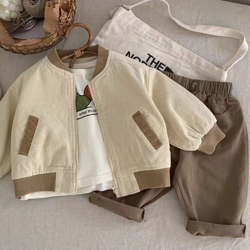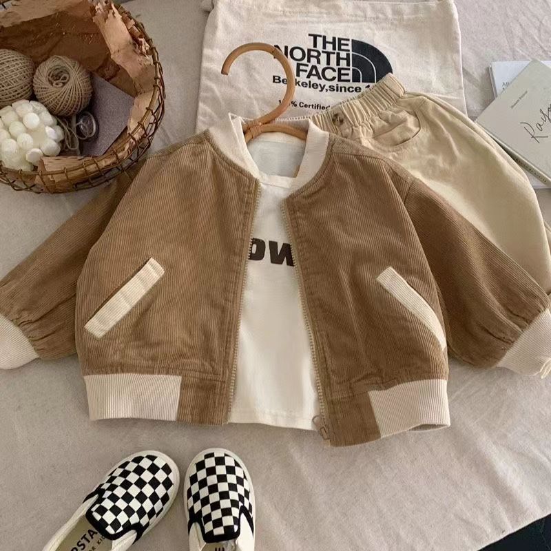소년 소녀 아기 스타일리스트 레트로 재킷 카디건 어린이 코트 봄 의류 일본과 한국 코듀로이 야구 세트 봄과 가을 패션스토어 가기