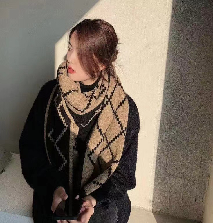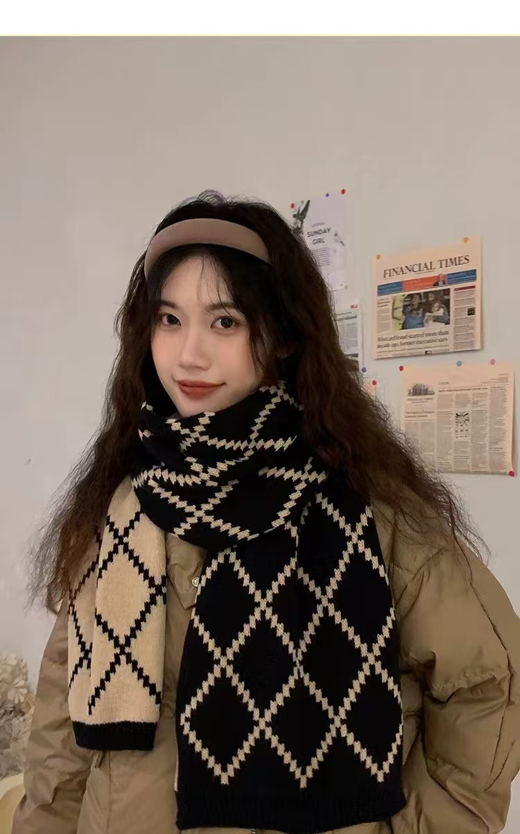 새로운 가을과 겨울 다이아몬드 격자 무늬 스카프 여성 일본식 복고풍 양면 양모 스카프 두꺼운 따뜻한 올매치 목도리 트렌디스토어 가기
