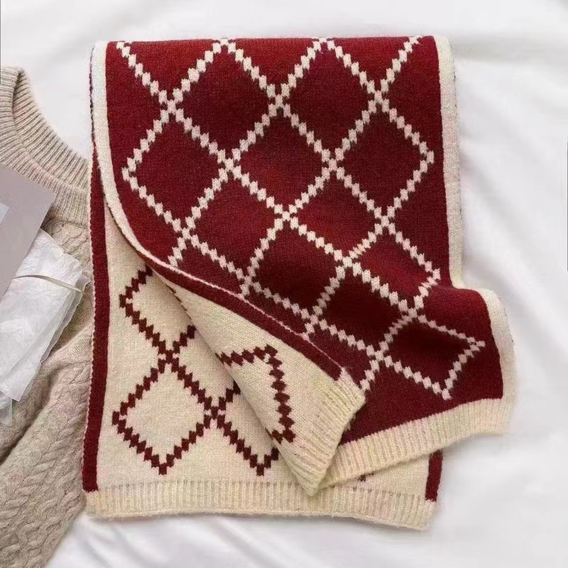 새로운 가을과 겨울 다이아몬드 격자 무늬 스카프 여성 일본식 복고풍 양면 양모 스카프 두꺼운 따뜻한 올매치 목도리 트렌디