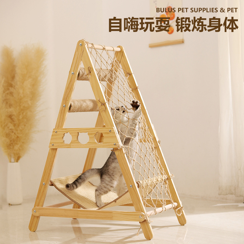 고양이 둥지, 고양이 스크래치 보드, 고양이 클라이밍 프레임, 일체형 사이잘 고양이 스크래치 포스트, 원목 대형 점프 플랫폼, 안정적인 삼각형 클라이밍 프레임