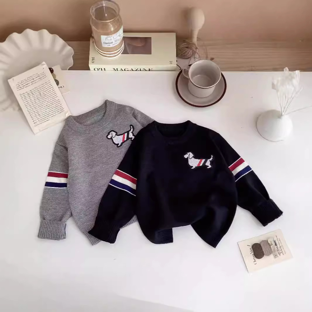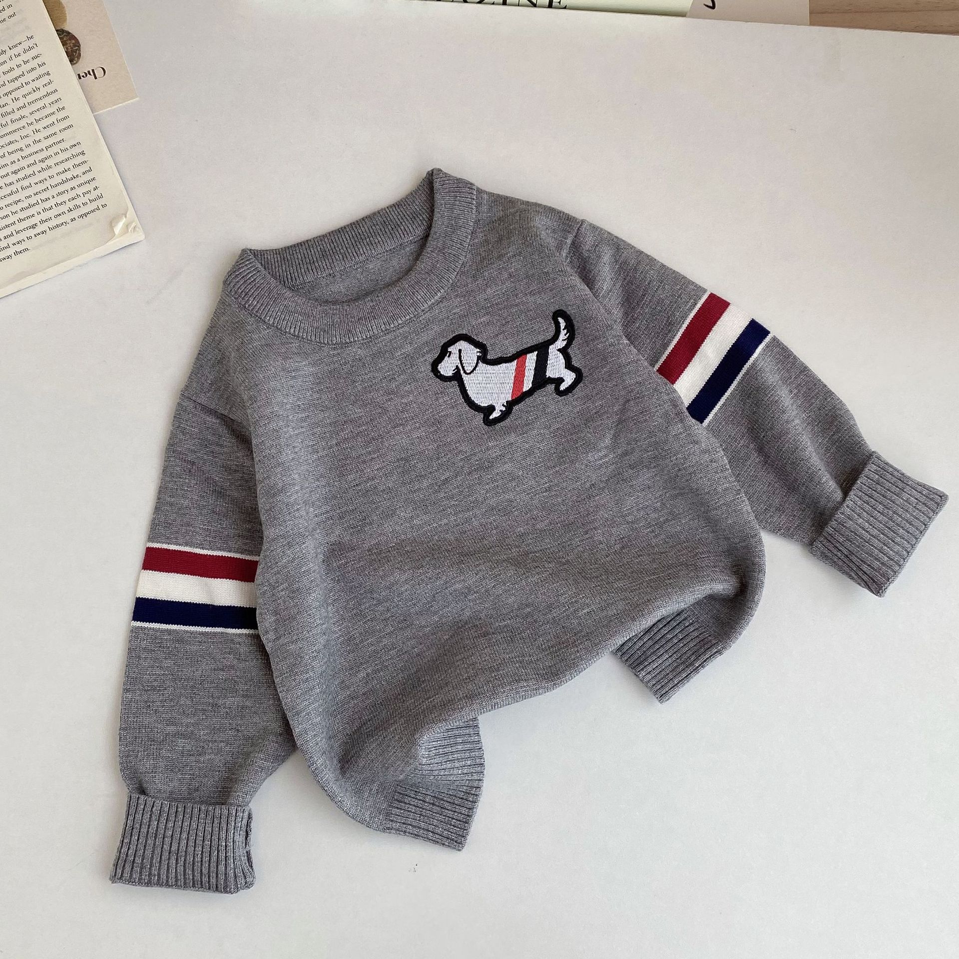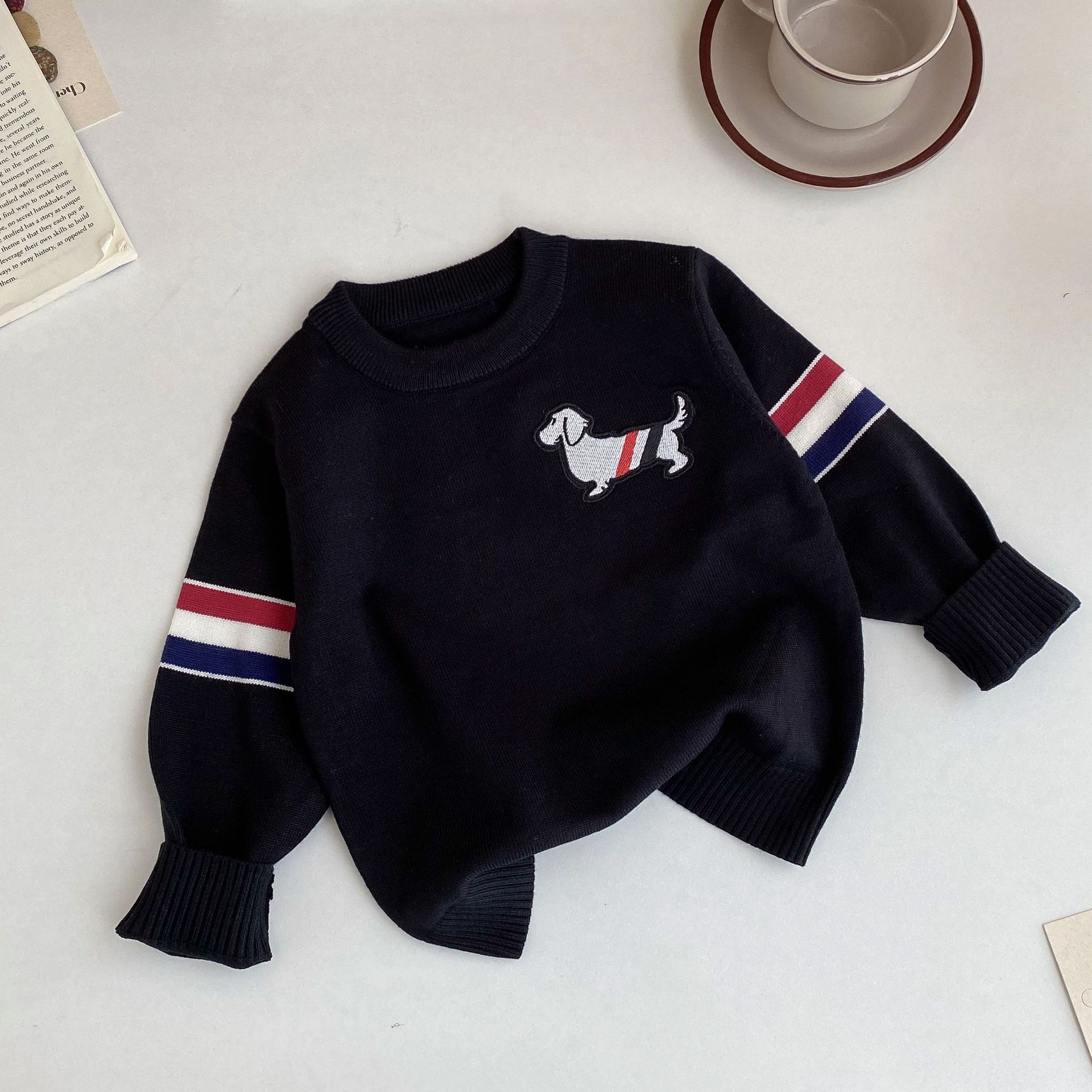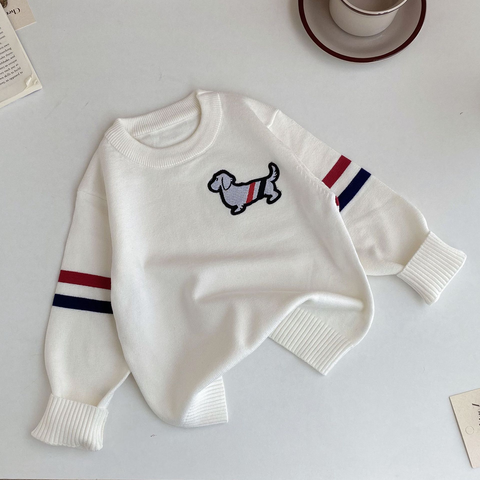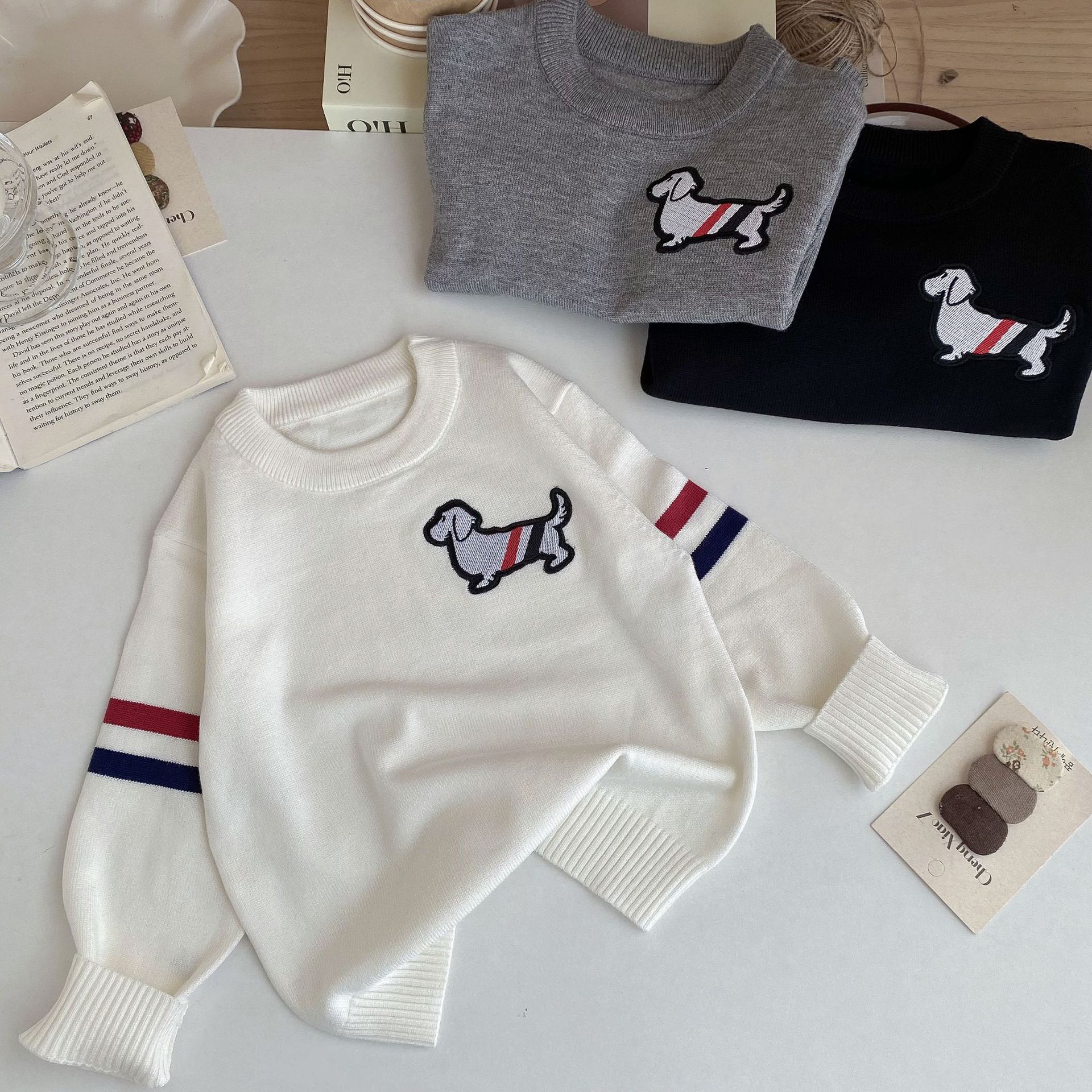 아동용 스웨터 2024 가을 겨울 신상품 남아 여아 니트 자수 만화 캐릭터 캐주얼 스웨트셔츠
