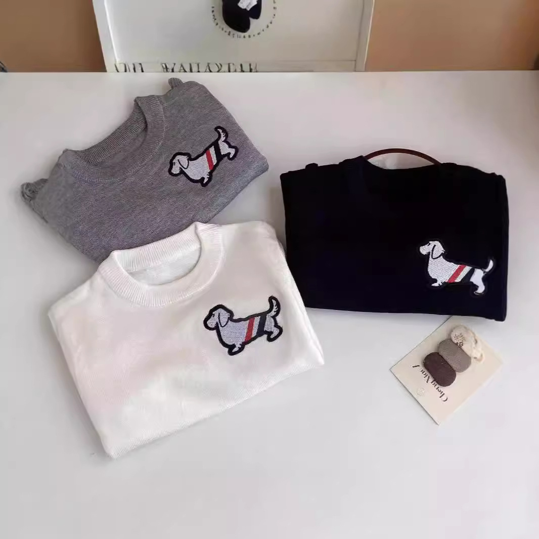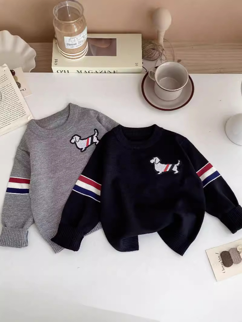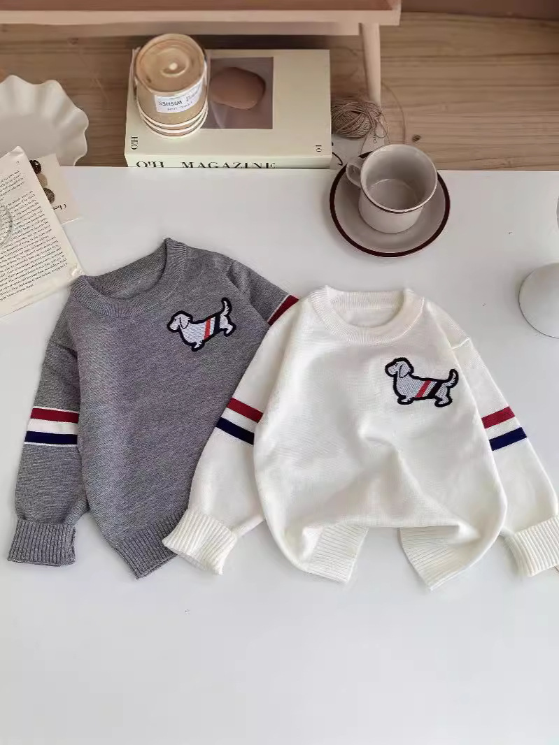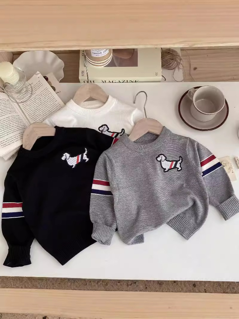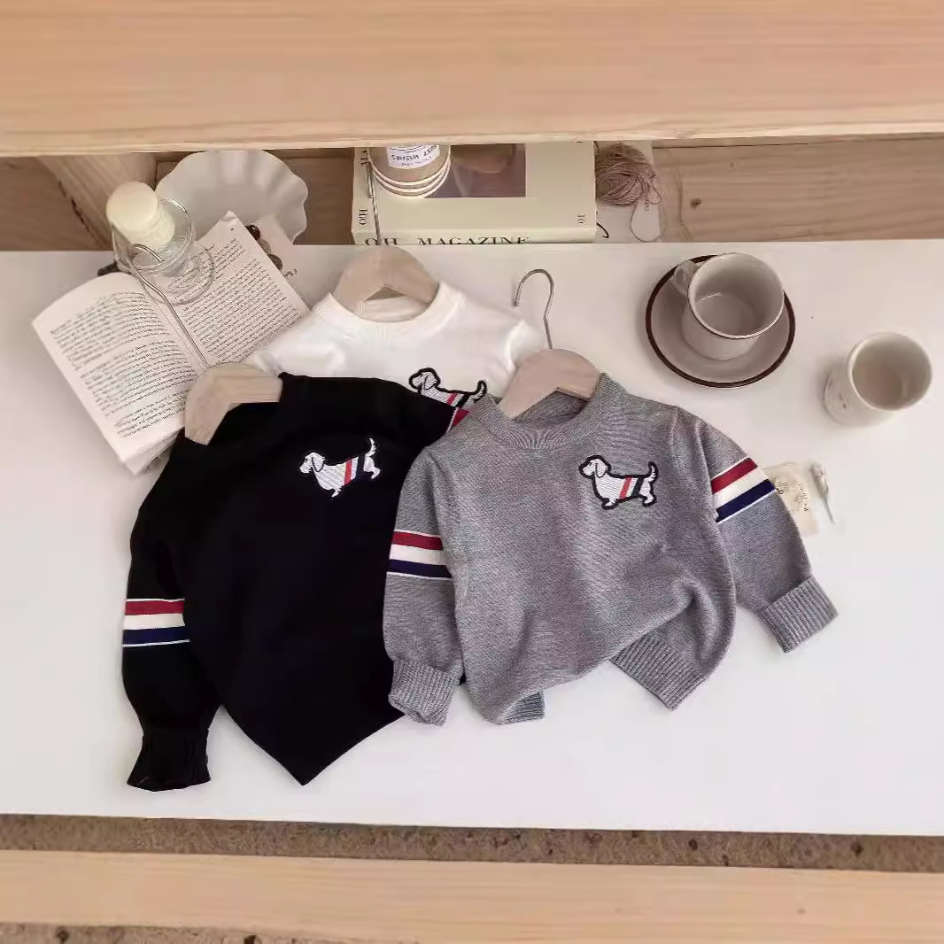 아동용 스웨터 2024 가을 겨울 신상품 남아 여아 니트 자수 만화 캐릭터 캐주얼 스웨트셔츠