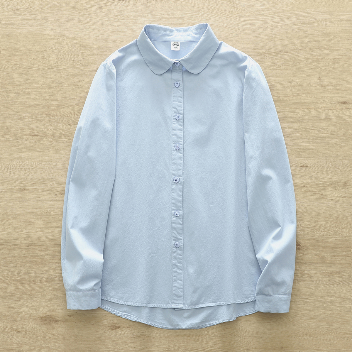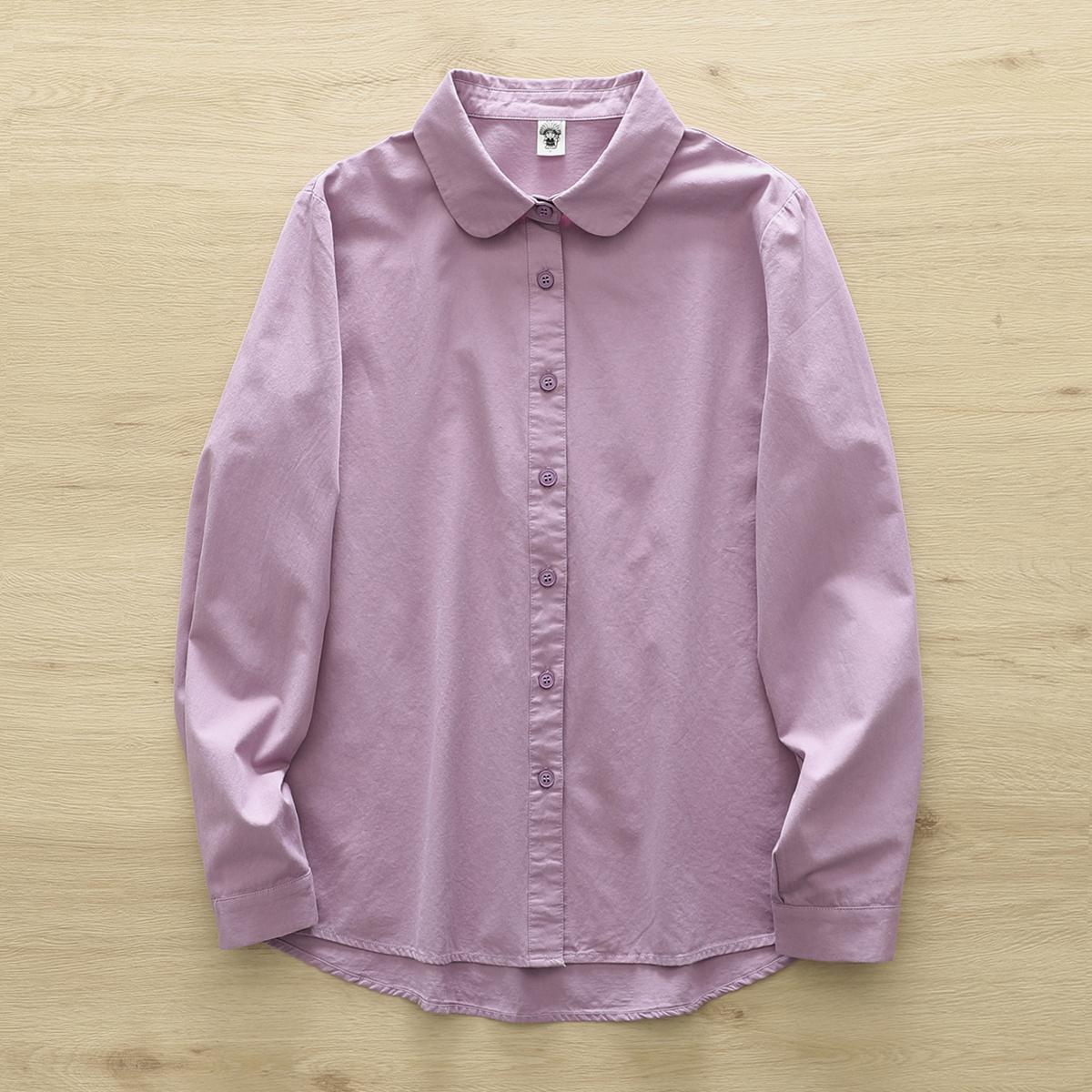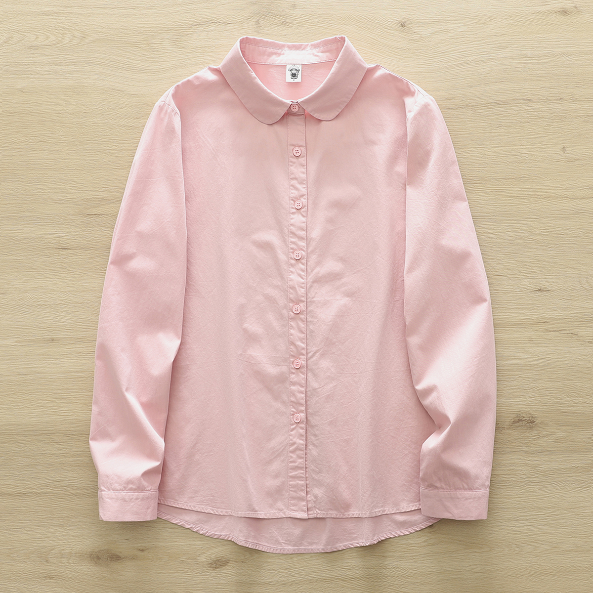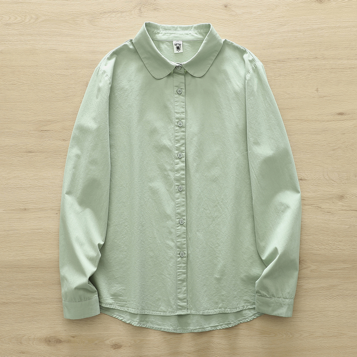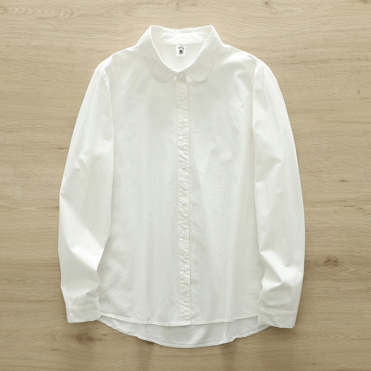 원래 싱글 빗 코튼 셔츠 여성의 봄과 가을 새로운 라운드 넥 긴 소매 올 매치 예술적 작은베이스 셔츠