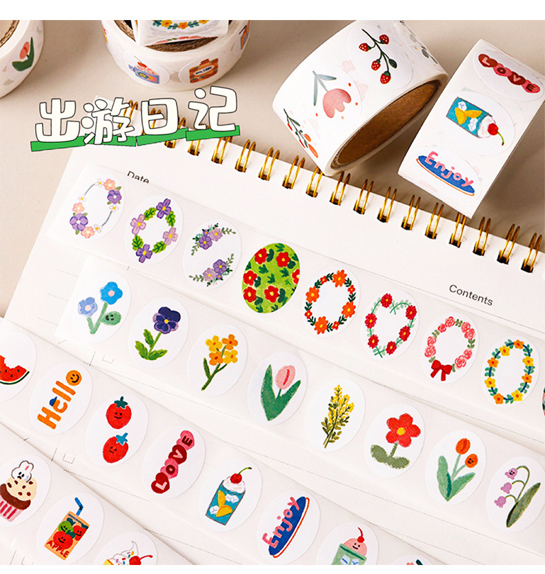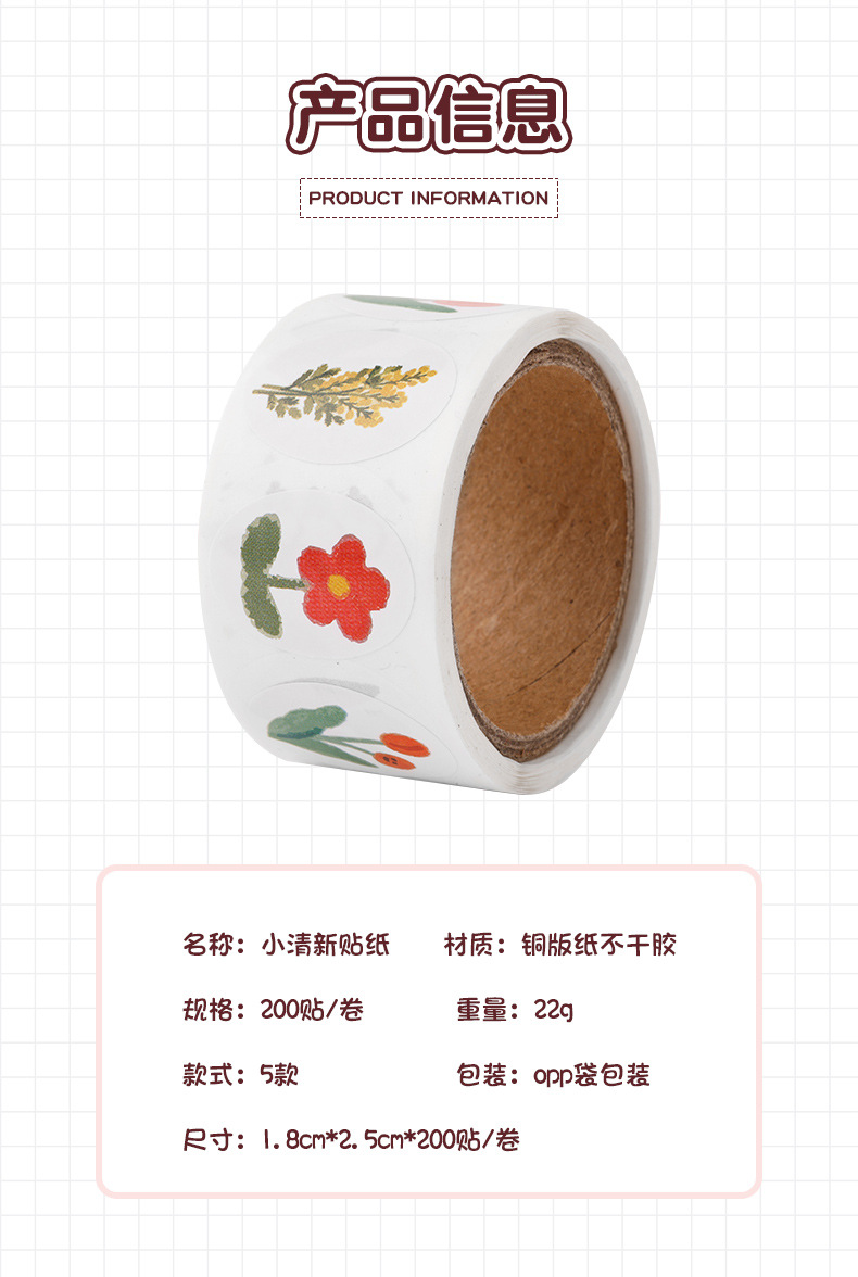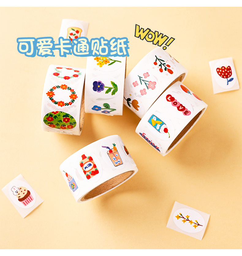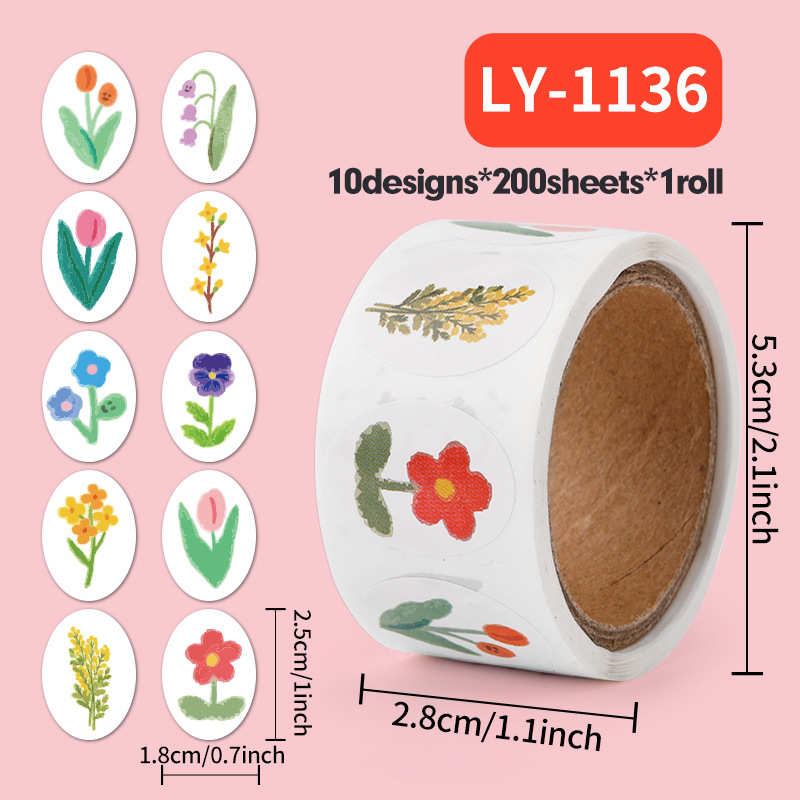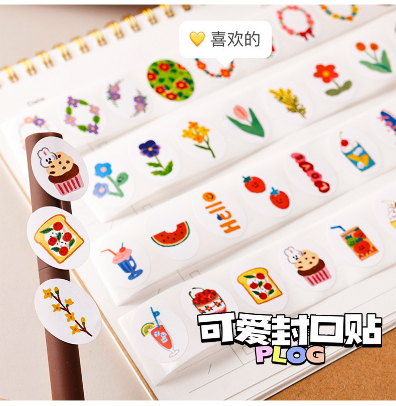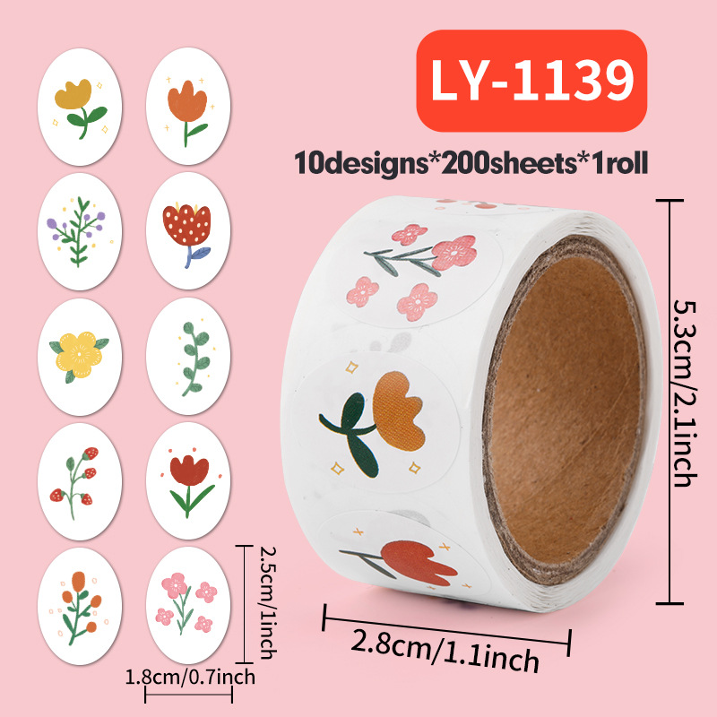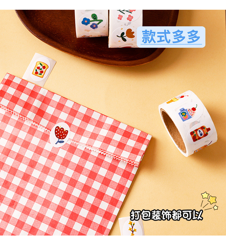 귀여운 식물 꽃 씰 스티커 케이크 베이킹 스낵 스티커 손 계정 소재 종이 코팅 종이 스티커
