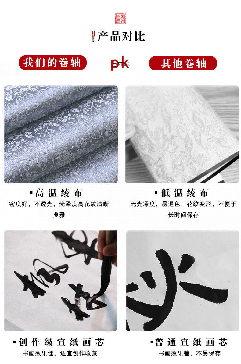 Xuan 종이 스크롤 세심한 그림 생 Xuan 종이 골동품 컬러 빈 매달려 샤프트 반쯤 조리 된 브러시 서예 작업 용지