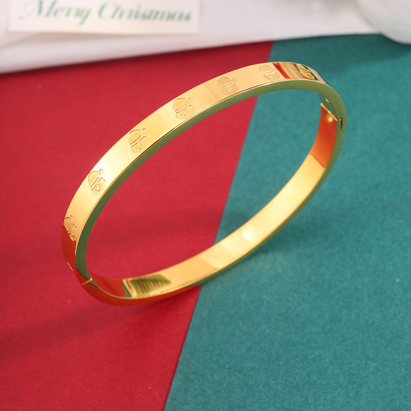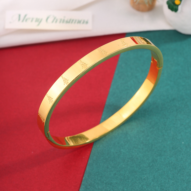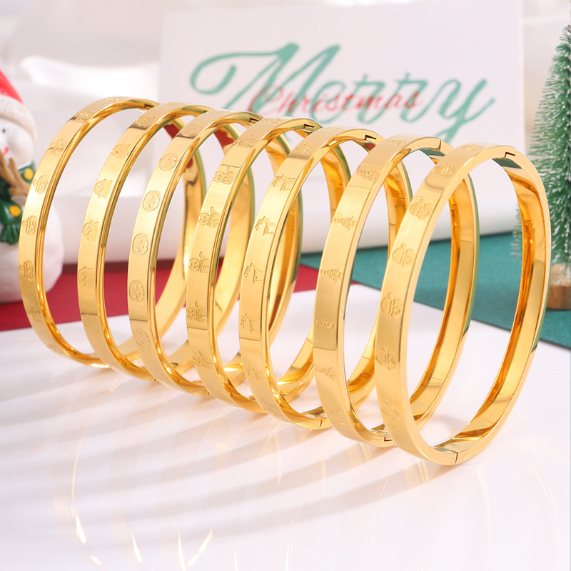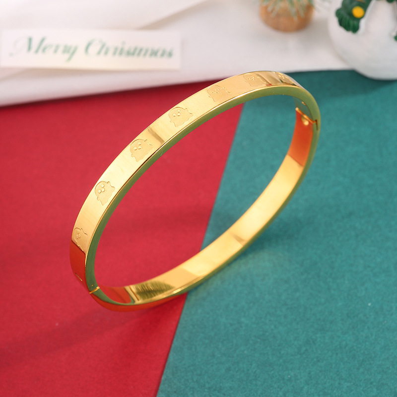 유럽과 미국의 만화 크리스마스 시리즈 모래 금 팔찌 크리스마스 요소 새겨진 스테인레스 스틸 팔찌 커플의 같은 스타일 카드 홈 팔찌스토어 가기