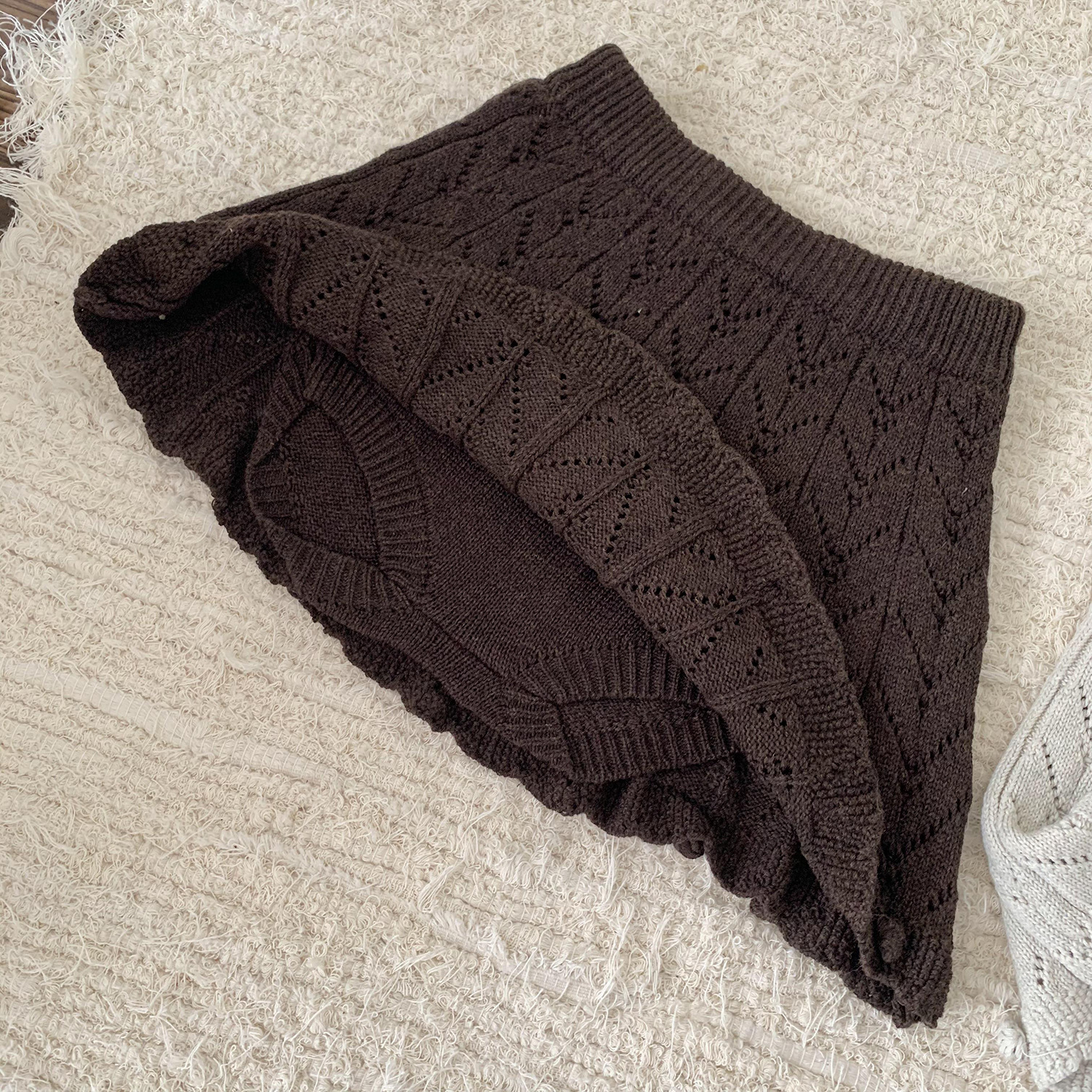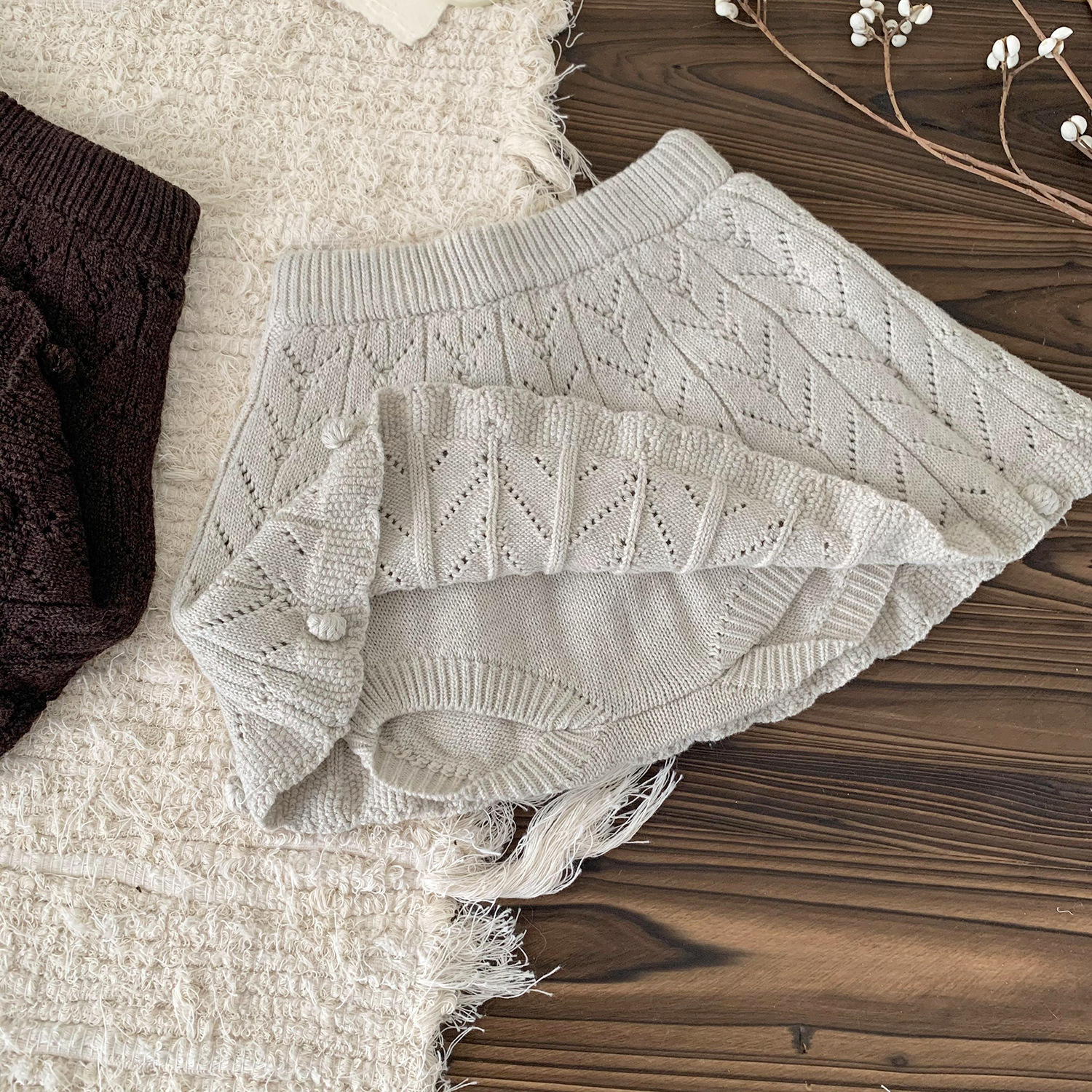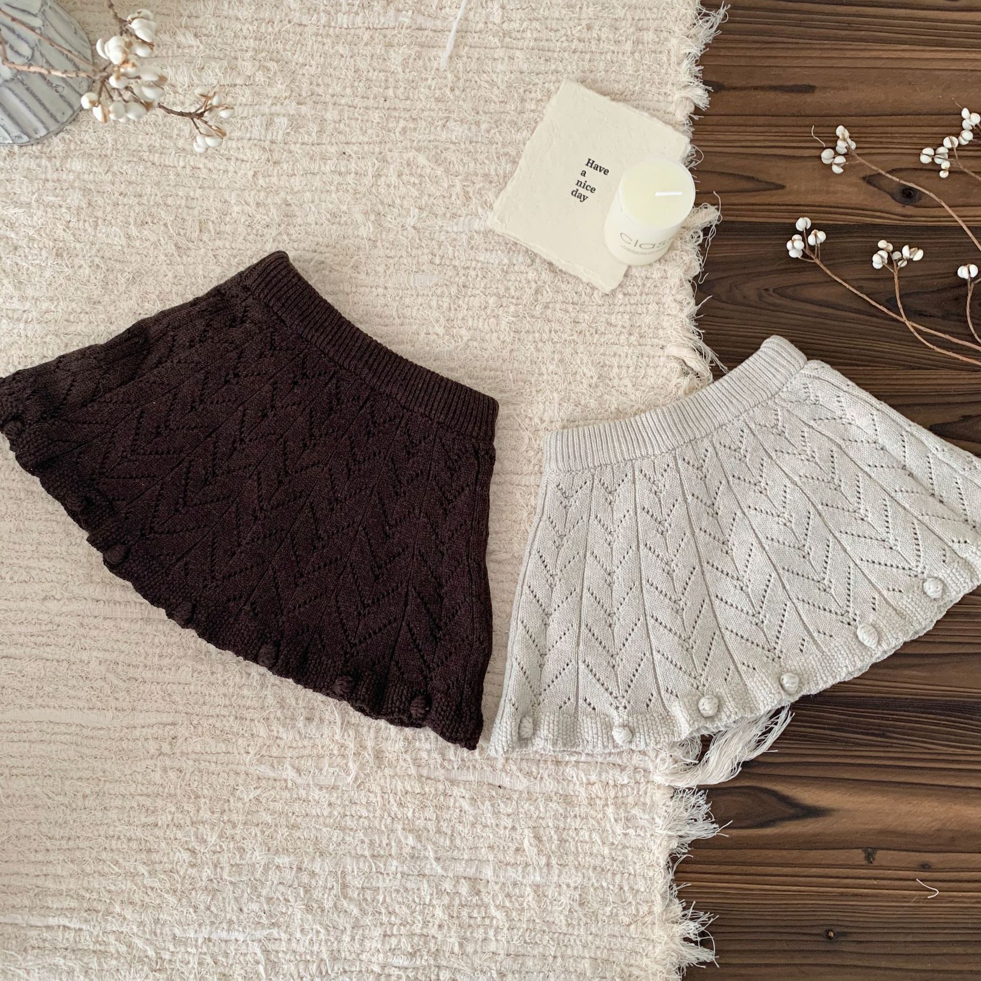컷 밀리 가을과 겨울 아기 소녀 연꽃 잎 스커트 니트 반바지 팬 스커트 여성의 가짜 투피스 속이 빈 볼 스커트